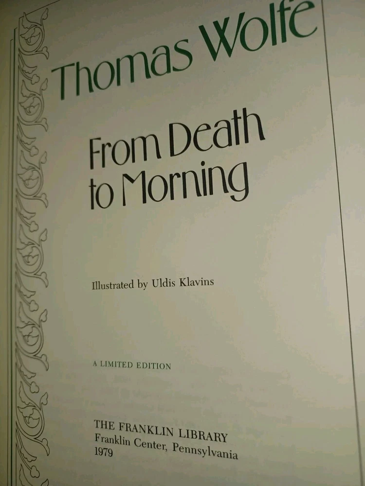 The product is a limited edition copy of "Death To Morning" by Thomas Wolfe, published by Franklin Library in 1979. It features a leather binding and is in new, unread condition. This collectible book is part of the literature genre, specifically falling under the subject of Literature & Fiction, and is written in English. The Franklin Library edition adds a touch of exclusivity to this classic work by Wolfe.