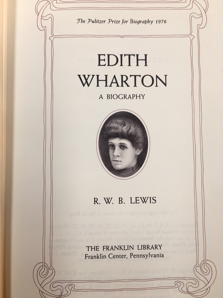 Franklin Library leather edition of R.W.B. Lewis's "Edith Wharton: A Biography," Illustrated with Period Photographs, a Limited edition, one of the PULITZER PRIZE CLASSICS series, published in 1986. Bound in brick red leather, the book has marbled paper end leaves, acid-free paper, Symth-sewn binding, a pink satin book marker, hubbed spine, gold gilding on three edges---in near FINE condition. Edith Newbold Jones Wharton, who lived from 1862-1937, was a member of a distinguished NEW YORK family and was privately educated in the U.S. and abroad. In the early 1920s, Wharton was the most renowned writer of fiction in America. She was one of the most intelligent American women and the first American woman to win a Pulitzer. Wharton divorced her husband, Teddy, when she learned that he was sexually unfaithful. During the fifteen months that followed the divorce (1913), she traveled in seven countries and three continents, telling her longtime friend, HENRY JAMES, that she felt liberated after 28 years of marriage. In a diary she kept spasmodically between 1924--1934, she remarked: "if I ever have a biographer, it is in these notes that he will find the gist of me." Her aim was to "gather together the floating scraps of experience that have lurked for years in corners of my mind. . ." 596 pages. I offer Combined shipping.