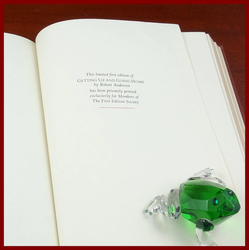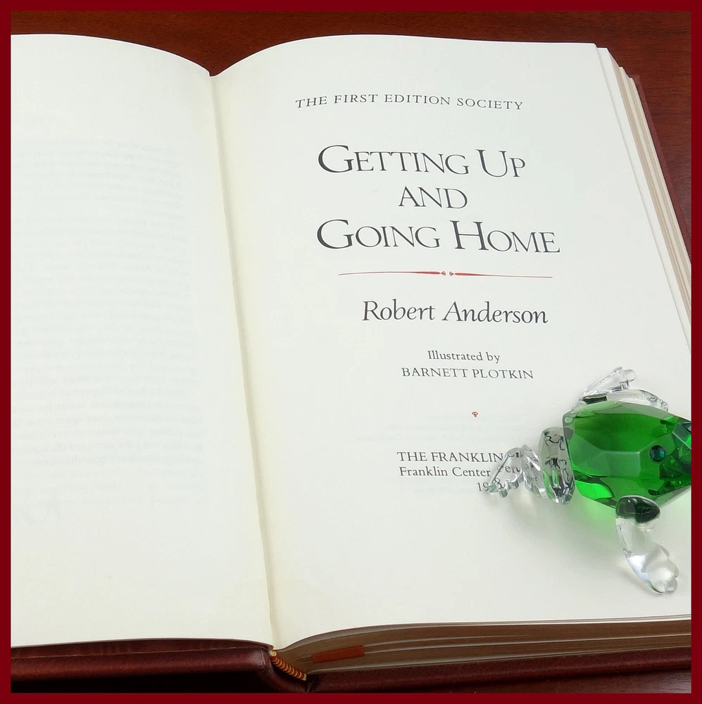 This text was featured by The Franklin Library in The First Edition Society series. Published as a Limited Edition in 1978, bound in handsome Ocher leather, the work is a 1st Edition thus. All Franklin Library genuine full-leather editions feature: • Full genuine leather binding. • 22k. gold lettering and stampings on the spine and covers. • Attached silk page marker. • High quality paper. • Pages that are sewn not glued into the binding. • Gold gilded page edges on all three sides. • Raised spine bands that give each book that distinctive antique look. ************************************************************************************************************************************** " Getting Up and Going Home , is the story of married man, Jack Montgomery, and his fractured relationship with his wife Cat, who wants out of their marriage, although they still love each other. Cat can’t find fulfilment in her marriage, and they agree on a trial separation. Jack, desperately lonely, embarks on 2 passionate relationships with 2 young women Kim, and Janet. . . . while claiming he was still in love with Cat. He also seems to be ambivalent about the need to have their aging dog put down. Cat and Jack are also about to become first time Grandparents, but this won’t keep them together, as Cat is still determined to go ahead with the divorce, Jack still wonders if he has the heart to start again, and of his feelings for Kim & Janet. He also questions WHY, as he heads off home alone." The above text was taken from a posted customer review.