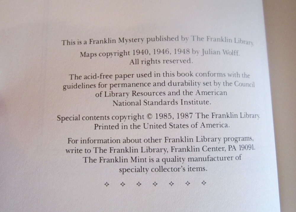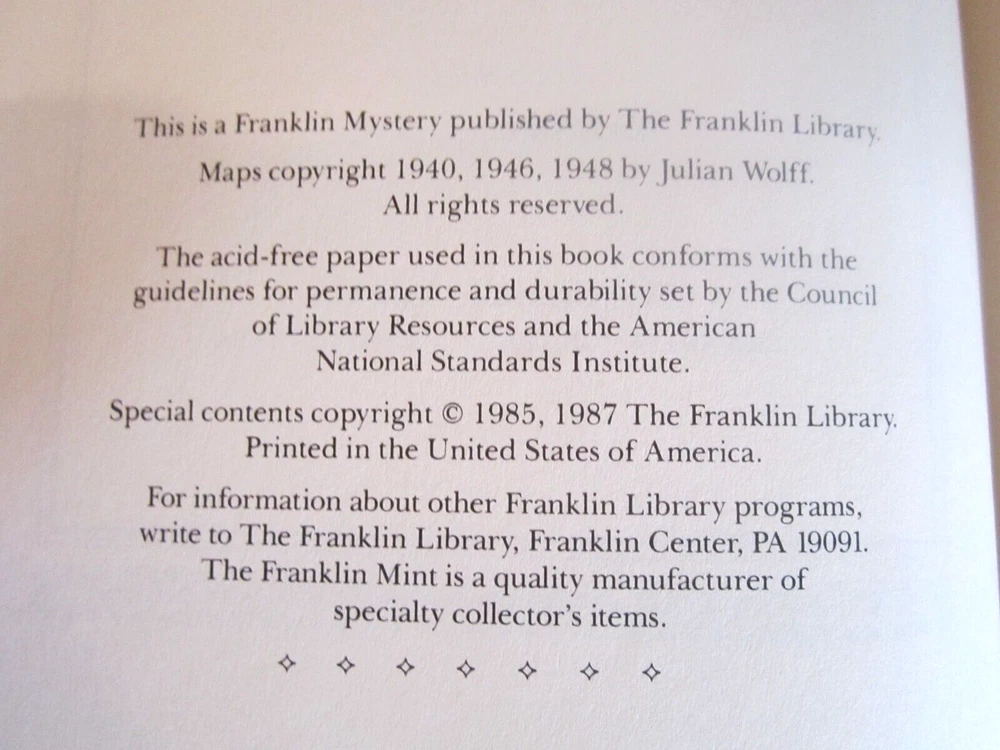 This stunning Franklin Library edition of Sherlock Holmes is a true collector's treasure! The rich full leather binding and intricate gilt detailing make it a luxurious addition to any bookshelf. As a vintage heirloom, it feels special just holding it—the craftsmanship is impeccable. Perfect for fans of Doyle’s classic mysteries or anyone who appreciates beautifully bound books. The seller’s attention to detail and honesty in describing the condition is much appreciated. A must-have for serious collectors!
