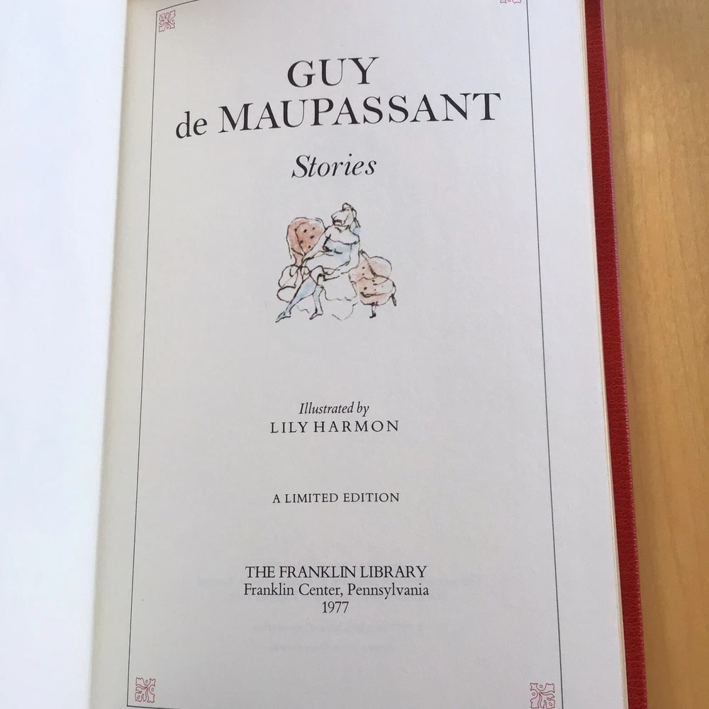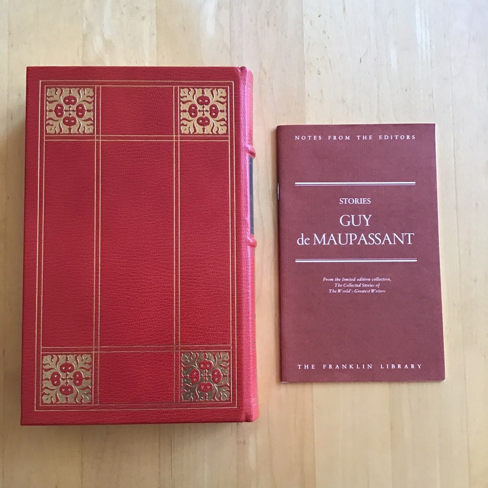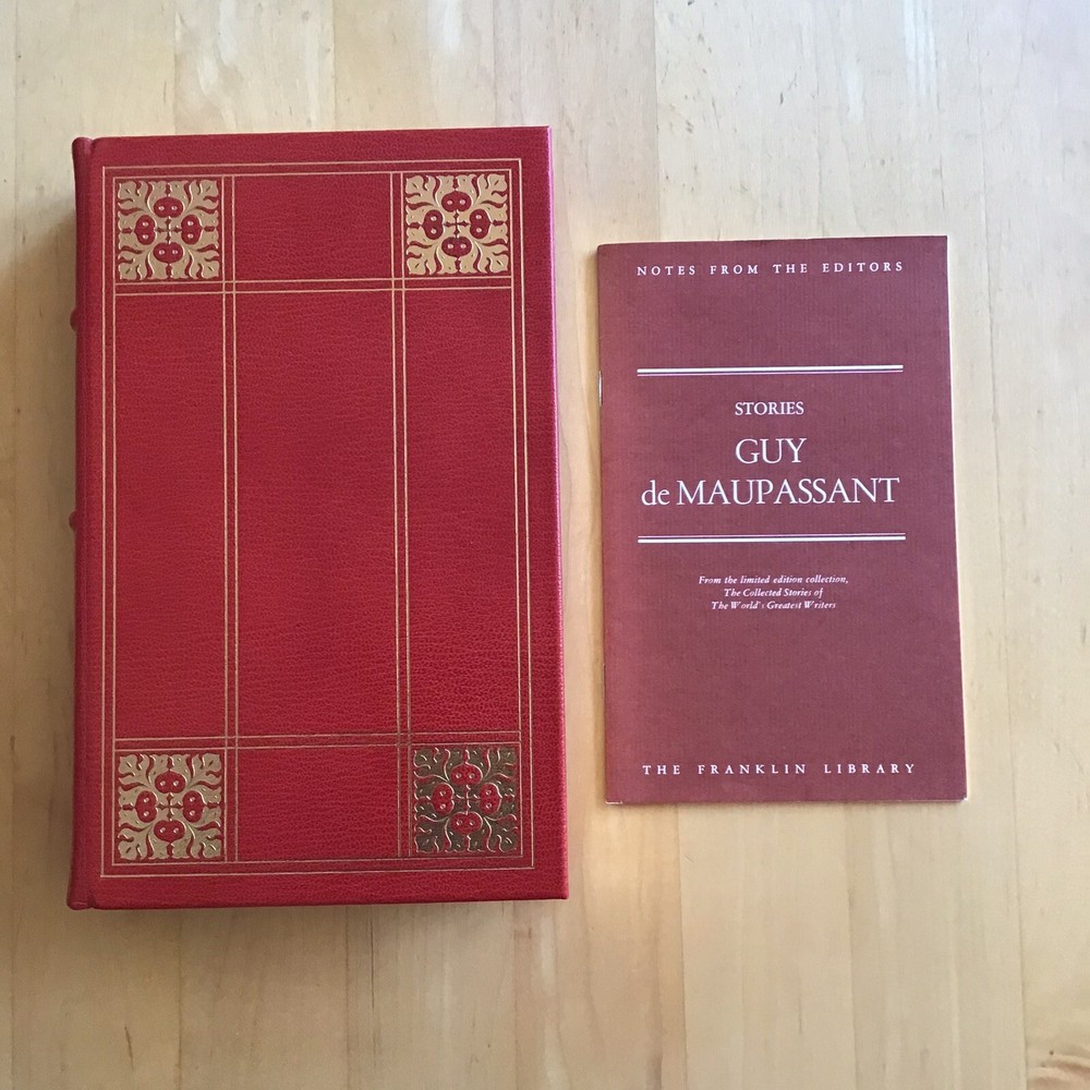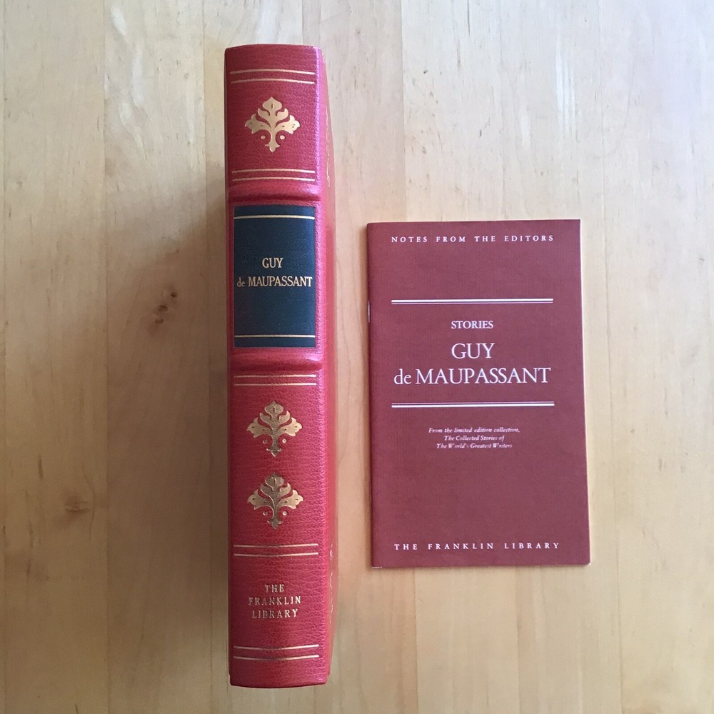 Franklin Library Guy de Maupassant STORIES Limited Edition 1977 In new condition, this copy has never been read or thumbed through. Purchased at time of issue and kept in an inclosed bookcase. It has full leather binding, 22k gold imprinting, raised hubs, silk moire fabric endpapers and sewn-in ribbon bookmark. Comes with the notes from the editor.