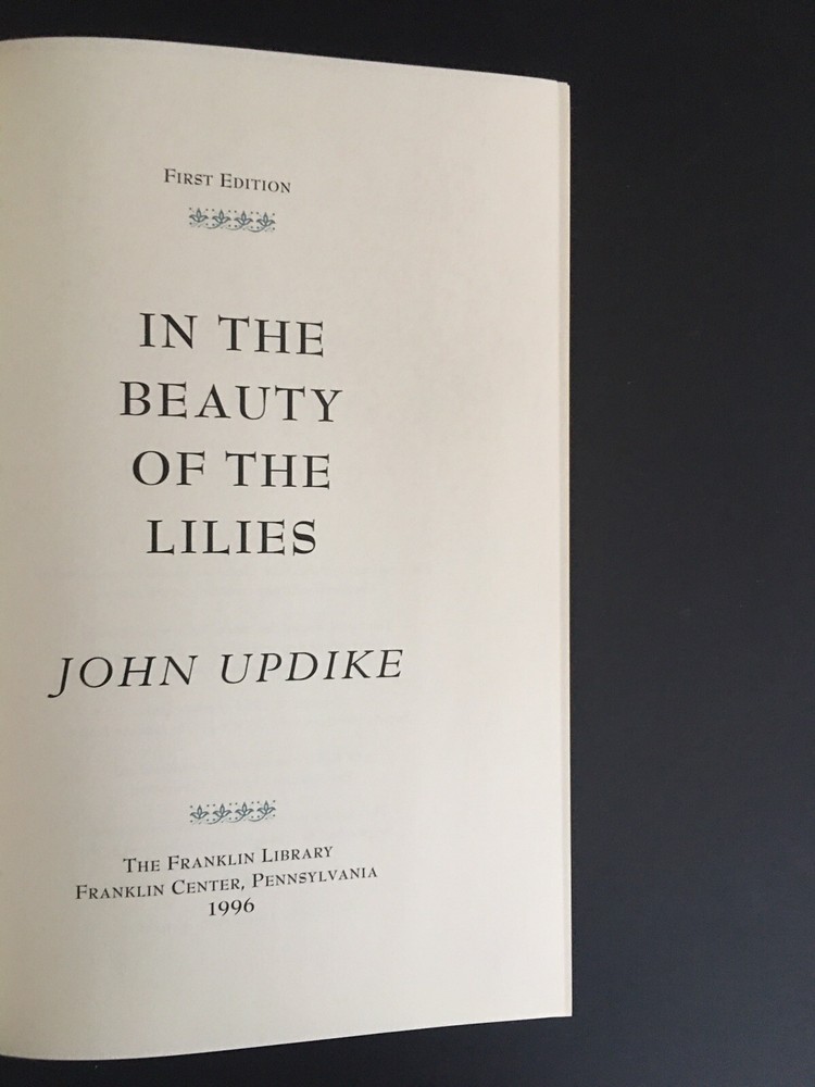 Franklin Library. In the Beauty of Lilies. John Updike. 1st edition. Signed. Franklin Center, 1996. A Very Good copy. No bookplate or blindstamp.