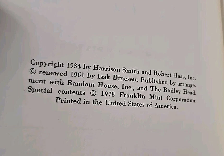 This rare and collectible Franklin Library edition of Isak Dinesen's Seven Gothic Tales is a must-have for any book enthusiast. The beautifully bound leather book features exquisite illustrations by Bernard D'Andrea and is printed in English. The book was printed in 1978 by Franklin Library and is part of their Greatest Writers series. Don't miss the chance to add this unique piece to your collection. This is a hardcover book. The binding is tight. The inside pages are clean. Overall, this book is in good condition. Here's the fine print .. we mail within 3 business days. We leave feedback when you pay. We want to make you happy, so please contact us if there are any questions, problems or concerns. We will do our best to find a solution. We appreciate your business and are always glad to hear from you. Recycled materials are often used in packaging.. yes.. it takes a little longer.. but we believe it is worth it. Your item will be packaged carefully.. plastic and padding are most often used. Thank you so much for considering purchasing from us and for being a fellow Ebayer! Until Next Time ~ Take Care!