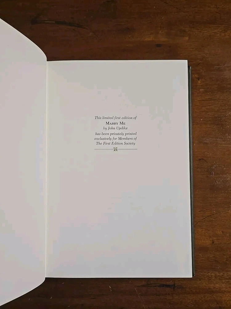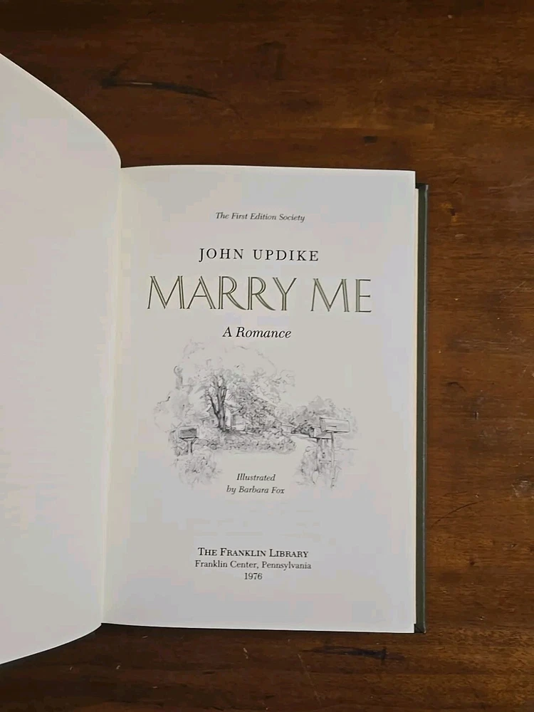 Franklin Library: Leather First Edition Society - Marry Me by John Updike. (RM5) I run a small used book store in Upstate New York. Youtube: "The Book Peddler" see book reviews and check out my latest book picks and stay up to date with what goes on in the shop! Weekly Videos Posted! Please like and Subscribe to help support, it's much appreciated! Here's a Link to the latest Book Pick: https://youtu.be/eSF3yELxjX0 Terms: Please remit payment no later than 3 days after the purchase via PayPal. Shipping: Domestic orders shipped via media mail, unless otherwise noted.