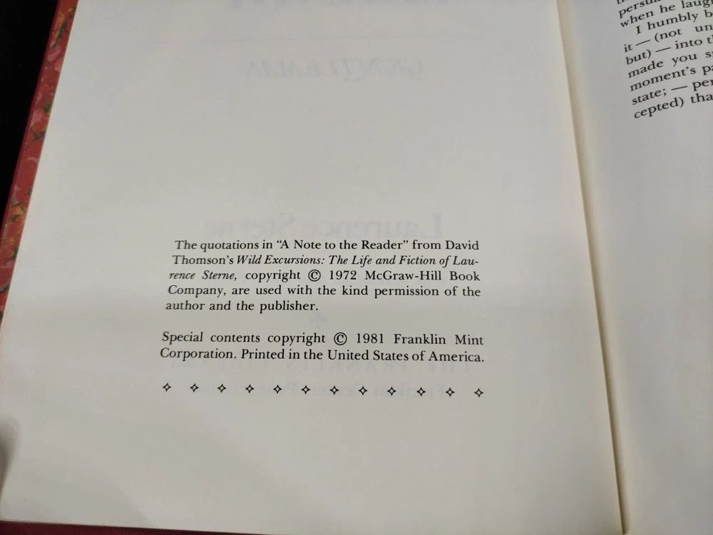 Franklin Library ¼ Leather-Bound Hardcover: Tristram Shandy by Sterne 1981....