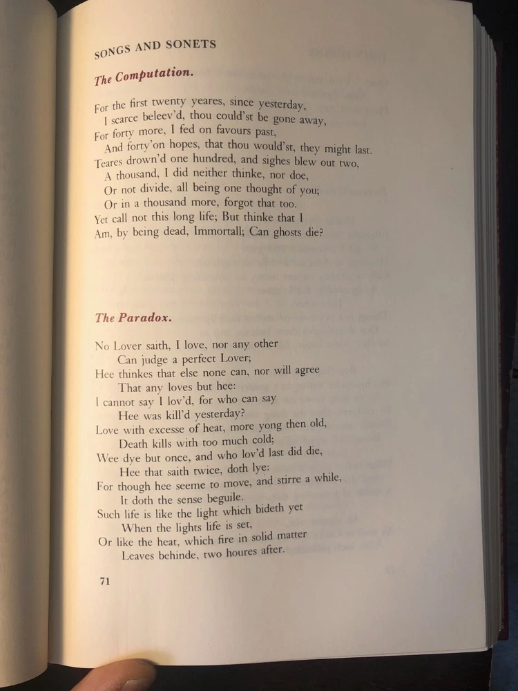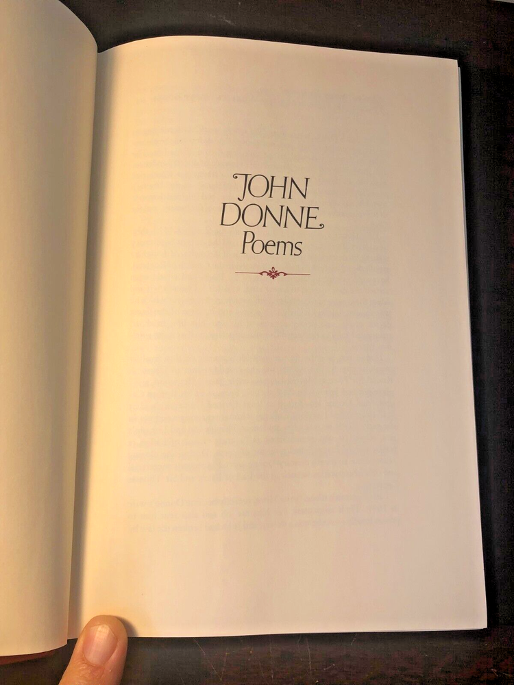 A rare luxury edition of JOHN DONNE POEMS in near fine condition. Part of the gorgeous and ultra-rare Oxford Library of The World's Great Books collection, this book was printed in 1985 by the Franklin Library and published in conjunction with the Oxford University Press. This full-leather Oxford series was the pinnacle of the Franklin Library's publishing crafts. These books are now difficult to obtain. Features/condition of this specific volume include: No bookplates, ex libris, or any signs of previous owners No bumps or dings to covers/binding. Bottom cover edges show a bit of shelf wear Gold text block gilding is excellent. Gilding has a few rubs. Binding is tight and solid. Please see photos to best assess for yourself the exact condition of the book. Let me know if you have any questions or need further information. Thank you! Your purchase will be carefully wrapped, packaged, and shipped with USPS Media Mail.