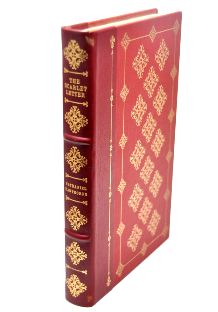 SCARLET LETTER By: Nathaniel Hawthorne 1979 Franklin Library Bound in 1/4 Bound Leather with decorative paper inside covers Satin Page Marker Gold End Pages all around 9 1/2"x 6 1/2"x1 3/4"...