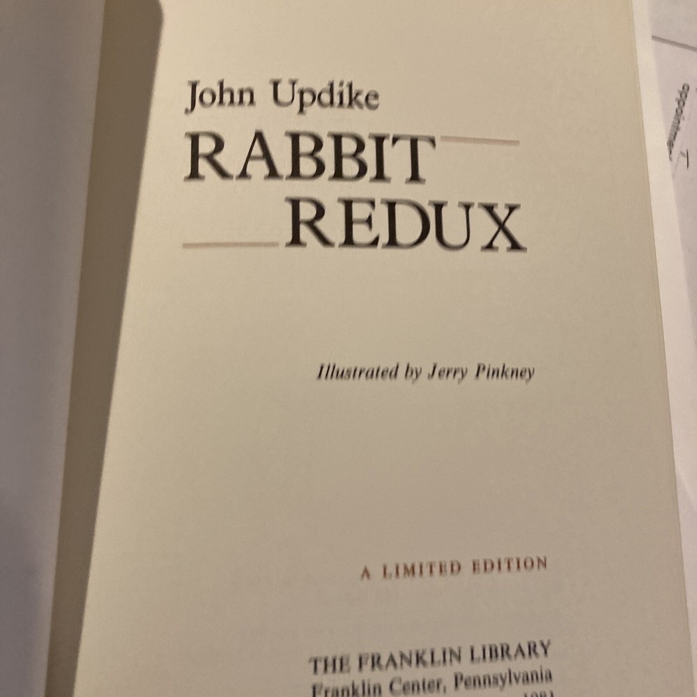 Franklin Library leather edition of John Updike's "Rabbit Redux," a Limited edition, Illustrated by Jerry Pickney, one of the SIGNED 60 series, Personally signed by JOHN UPDIKE, published in 1981. Bou...