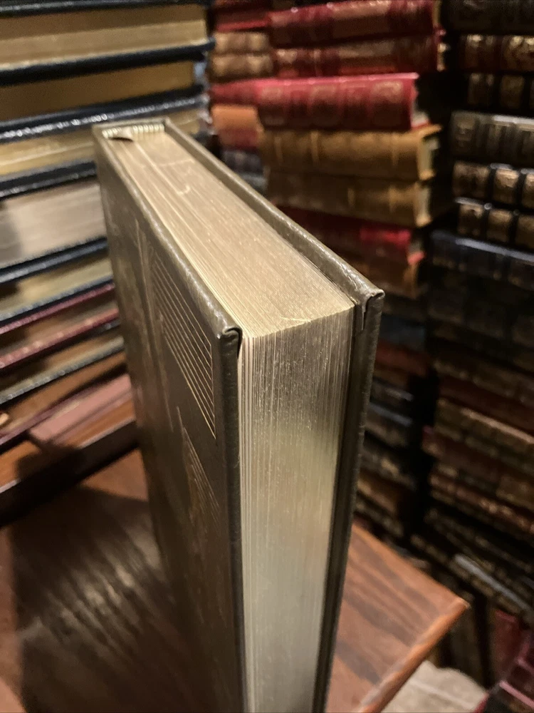Absolutely stunning collector’s edition! The hunter green leather binding with gold gilding feels luxurious, and the Smyth-sewn construction ensures durability. The marbled end leaves and satin bookmark add elegance, while Richard Condon’s signature makes this a rare gem. The gripping mafia tale kicks off with Henry’s kidnapping—classic Condon satire. A must-have for literature lovers and collectors alike!