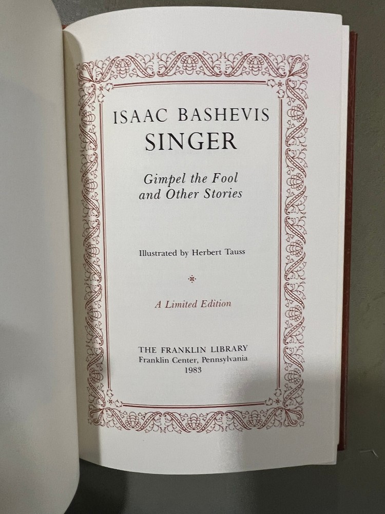 Singer, Isaac Bashevis - Gimple the Fool and Other 10 Stories Franklin Library Collected Stories of the World's Greatest Writers Series Like NEW Condition ! New Books get listed daily !!! 100s of Easton Press and Franklin Library books available!! All books get cleaned with a leather cleaner to remove any dust, odor and restore the beauty of leather!! Combined Shipping Discount: USA buyers - every book $1 off International combined shipping: 1 or 2 books - $40 3 or 4 books - $70 5 + books $17 per book 10+ books $13 per book WE SHIP DAILY!! RETURNS: Hassle-Free 30-days return policy and we pay for a return !! Check our Inventory (Link to eBay Store): http://stores.ebay.com/EastonFranklinBooks