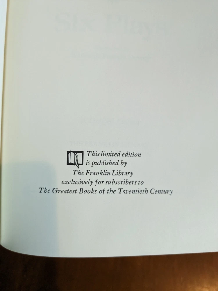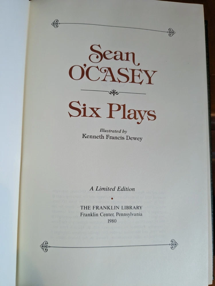 Six Plays by Sean O'Casey for Franklin Library's Greatest Books of the Twentieth Century collection. Full leather bound with gold gilt page ends, silk moire end pages and silk marker ribbon. Book is in unread, mint condition. See pictures for details.