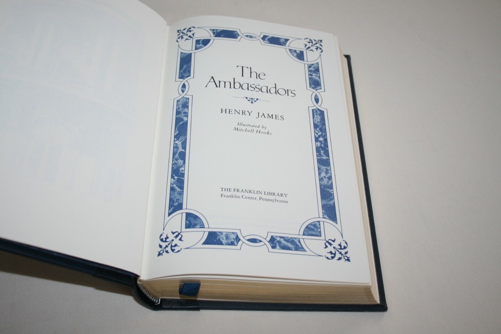 From the Franklin Library Collection... The Ambassadors by Henry James Illustrated by Mitchell Hooks Copyright 1981 by The Franklin Library Premium Leather Binding This volume contains all of these classic Franklin Library trimmings: Leather Binding Decorated Endleaves Distinctive Cover Design Satin-ribbon Book Mark Hubbed Spine, Accented in Real Gold Gilded Page Edges Long-lasting, High Quality Acid-neutral Paper Beautiful Illustrations A very scarce title in any condition, this copy is in Mint and Unread condition. The front and back covers are both in near Perfect condition. The leather binding is in Fantastic condition and the gilded page edges show hardly any wear at all! (see pictures). There is no attached bookplate nor any other signs of previous ownership . This book is published by The Franklin Library and would be a beautiful addition to your Franklin Library book collection. Overall, this copy is a grade collector's book. This book is very elusive in this superior condition, as only a limited number of them were ever published, so now is the time to act. Hopefully you can add this book to your collection and enjoy it in the years to come... Please Email Me With Any Questions You Might Have! Shipping Info: Buyer to Pay Shipping and Handling International Bidders Pay Extra Shipping Seller Not Responsible For Uninsured Items Lost or Damaged in Mail Forms of Payment Accepted: Paypal Good luck and happy bidding! Powered by eBay Turbo Lister The free listing tool. List your items fast and easy and manage your active items.