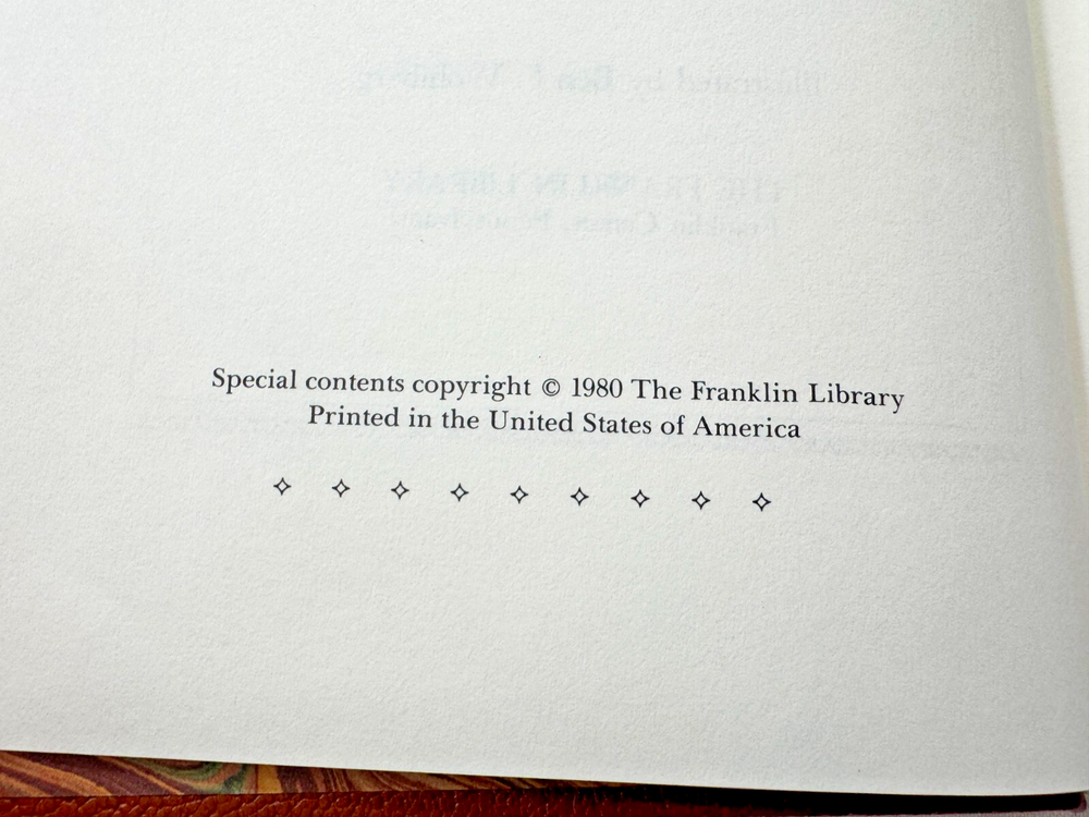 From the Franklin Library Collection... The Return of the Native by Thomas Hardy Illustrated by Ben F. Wohlberg Copyright 1980 by The Franklin Library Bound in Premium Full Leather This volume contains all of these classic Franklin Library trimmings: Premium Leather Binding Decorated Endleaves Distinctive Cover Design Hubbed Spine, Accented in Gold Satin Ribbon Page Marker Gilded Page Edges Long-lasting, High Quality Acid-neutral Paper Beautiful Illustrations DESCRIPTION A very scarce title in any condition, this 1980 Limited Edition is in near Mint and Unread condition. The front and back covers are in Excellent condition showing minor wear and the gilded page edges show hardly any wear at all! There are no markings, bookplates, or other signs of prior ownership in this book. This Edition is published by The Franklin Library and would be a beautiful addition to your Franklin Library book collection. Overall, this copy is a grade collector's book. This book is very elusive in this superior condition, as only a limited number of them were ever published, so now is the time to act. Hopefully you can add this book to your collection and enjoy it in the years to come... SHIPPING POLICY We take great care packaging every item to ensure safe shipment to you. Items are packaged using plenty of bubble wrap and packaged securely in a sturdy box. Our secure shipping methods have resulted in zero damaged items in over 15 years! Items are shipped out within 1 - 3 days of payment being received. RETURN & REFUND POLICY We accept refunds within 30 days of purchase. If you are not 100% satisfied with your purchase, please contact us about a refund, or initiate a refund through eBay. CONTACT US We are committed to providing our customers with the best possible on-line shopping experience. This includes a commitment to excellent customer service, before you purchase as well as after your order has been delivered. Please feel free to submit any questions or inquiries regarding this item or your order by sending us a message through the eBay messaging system. We will typically respond within 24 hours of receiving your message.