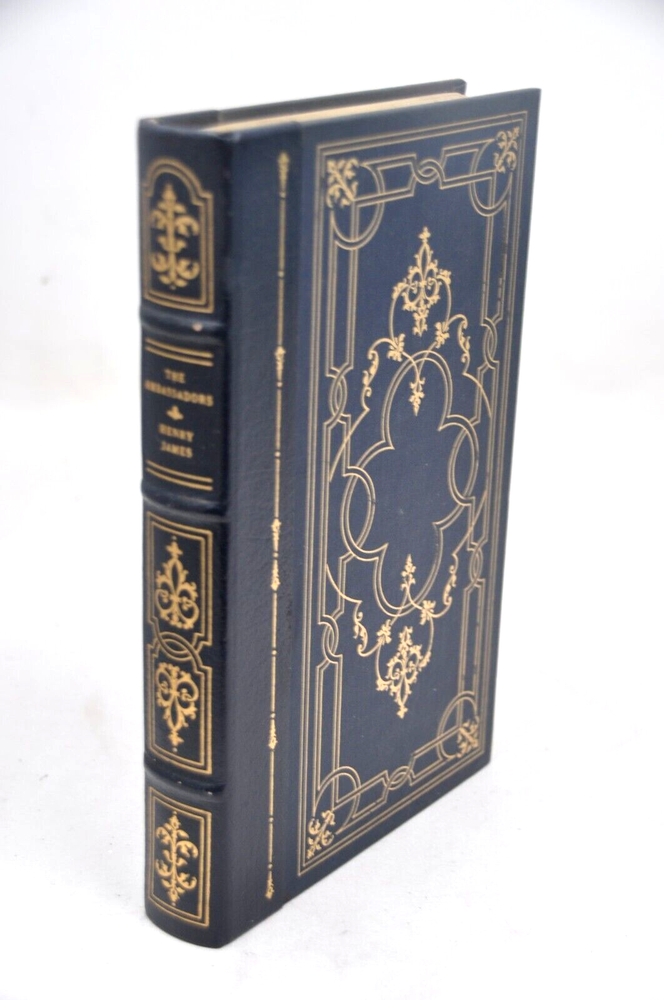 THE AMBASSADORS By: Henry James 1981 Franklin Library Bound in 1/4 Bound Leather with decorative paper inside covers Satin Page Marker Gold End Pages all around 9 1/2"x 6 1/2"x1 1/4"...