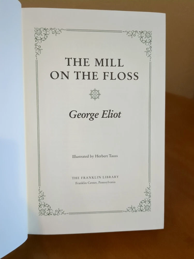 Franklin Library's Limited Edition of The Mill On The Floss by George Eliot. Leather bound with hubbed spine and 22kt gilded page ends. In used condition. Note that there is a small stain in the bottom page crease. See pictures for further details.