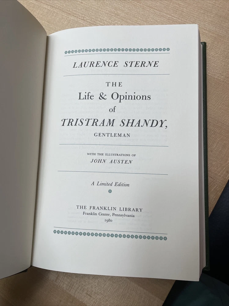 Franklin Library Tristram Shandy by Laurence Sterne 100 Greatest Series.