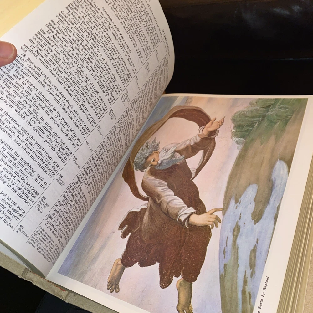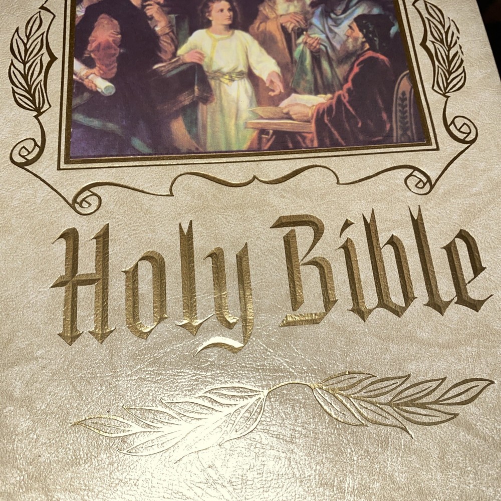 Beautiful Bible, very heavy and large, large print , easy to read. Please see all the photos for the details. We will ship the next day. Thank you for shopping with our family owned business. God bles...