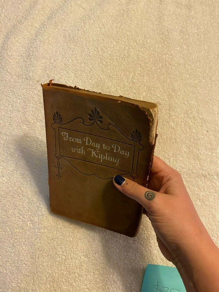 From Day To Day With Rudyard Kipling Leather Bound Book. wear on leather and separation from the binding is present. The top right of the pages are worn but this doesnt effect readability...