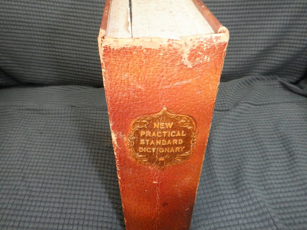 Funk and Wagnalls New Practical Standard Dictionary 1946 Leather bound The spine has a little damage. Please check pictures I am listing all auctions with media mail as shipping preference to keep cost down. If you want faster shipping, please let me know before you buy so I can adjust it to faster shipping (it will be more expensive)