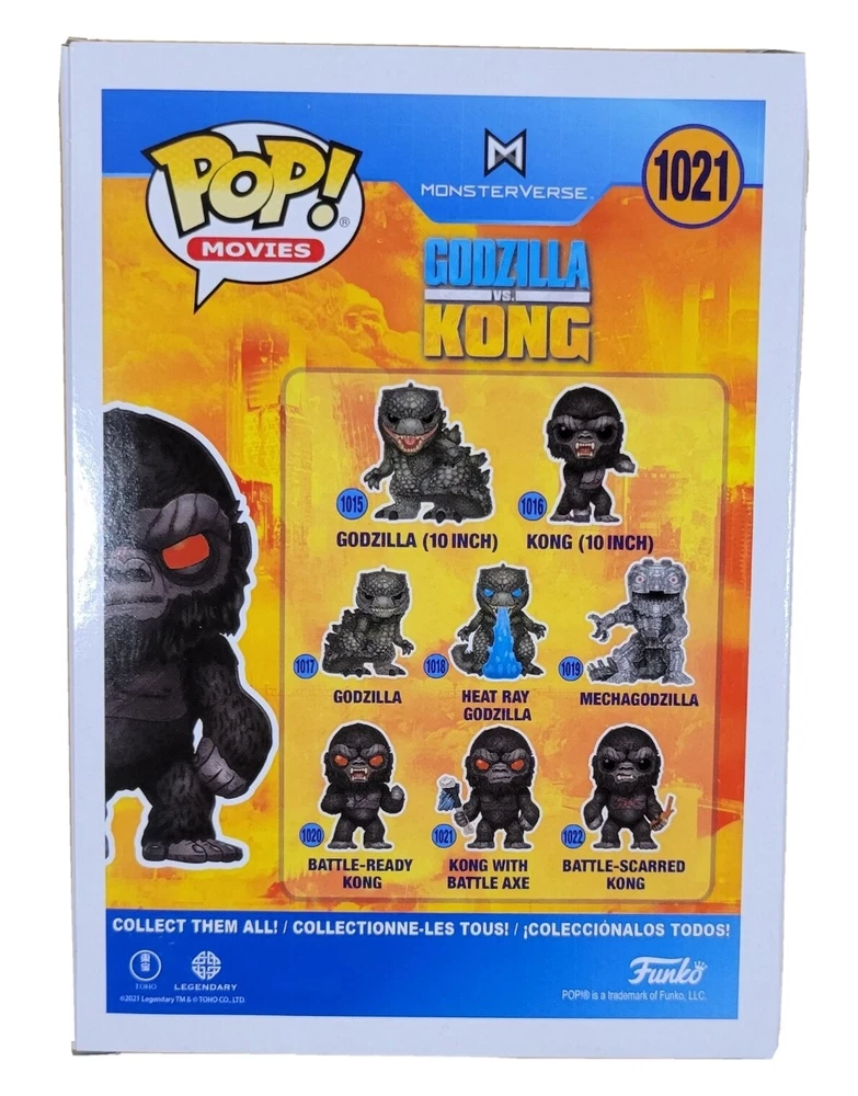 Funko POP! Godzilla vs. Kong #1021 KONG WITH BATTLE AXE, In Protector, New. We understand that some people are particular about the box conditions. Therefore, we ask that you please view all of the pictures carefully for more item details and conditions. If you do purchase this item, we ask that you please leave feedback. Thank you in advance.