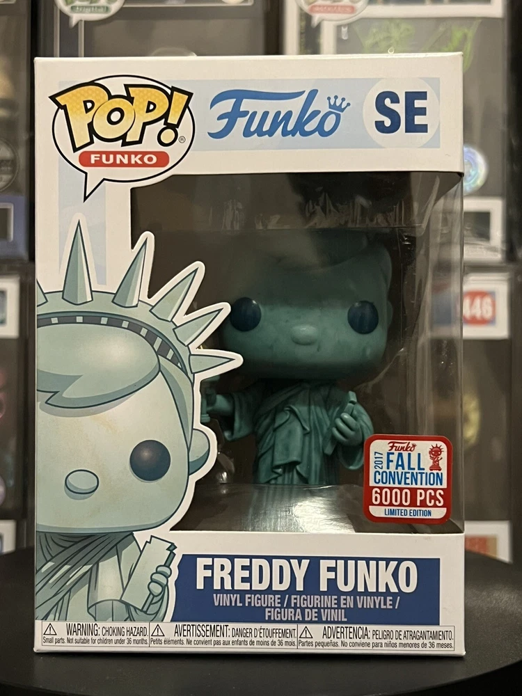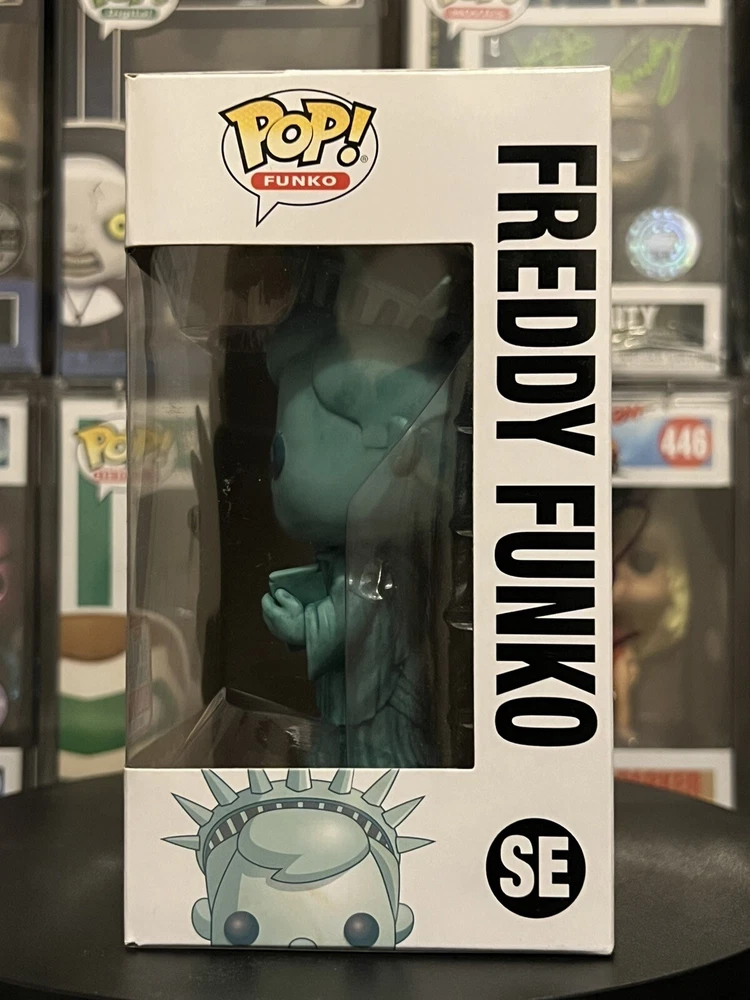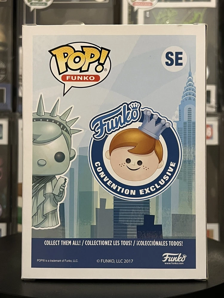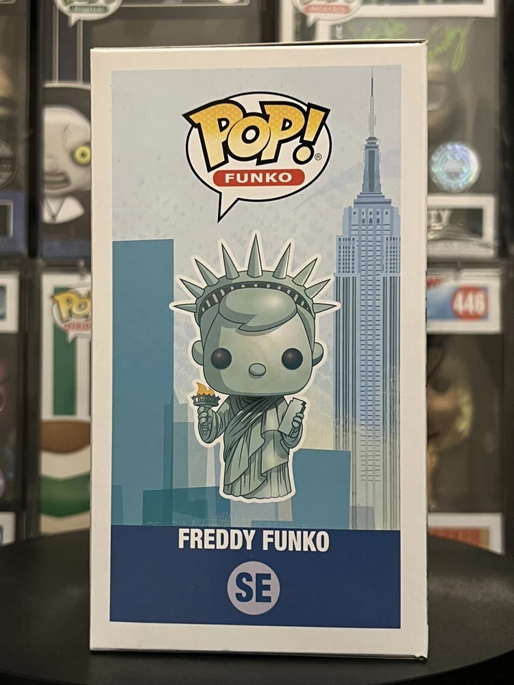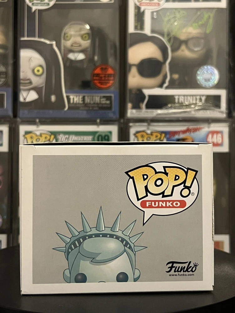 Introducing the Funko POP! Liberty Freddy Figure - 98203, a highly sought-after collectible for any Disney or Game of Thrones fan. This vinyl figure features Freddy Funko, Drogon, Godzilla, Giant Wight, Frieza, and The Grady Twins, and is a must-have addition to any Funko collection. With its vibrant red color, this standard-sized figure is made of high-quality vinyl material and comes in its original packaging, unopened. This exclusive, limited edition figure was even available at the New York Comic Con. Perfect for any collector, this Funko POP! figure is part of the Pop! product line and features a vaulted design, making it a rare find.
