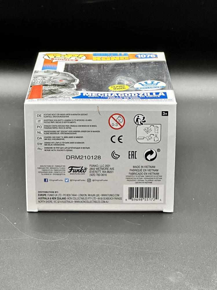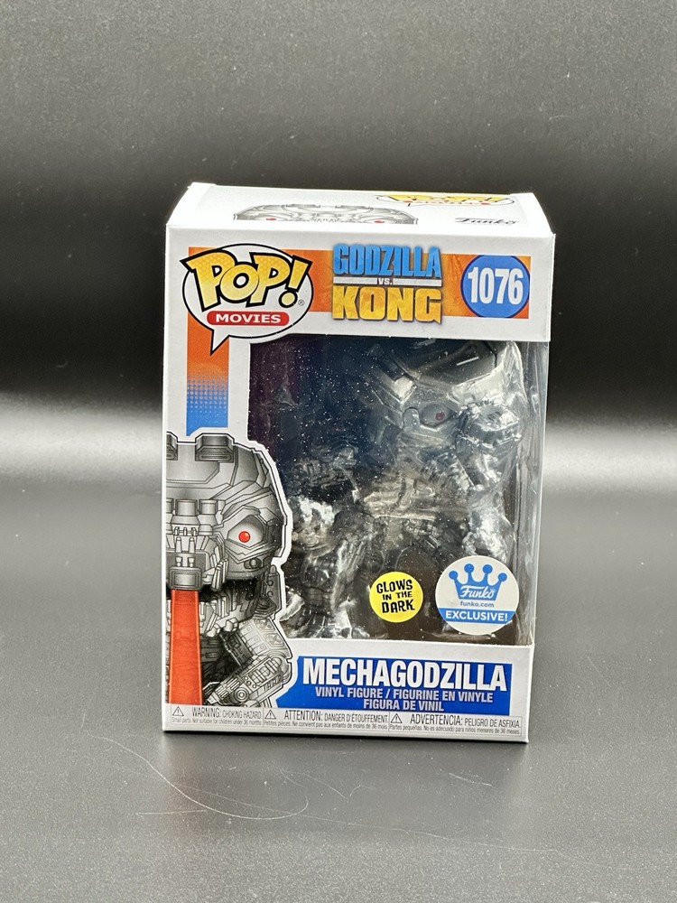 Experience the glow of the Funko Shop Exclusive Mechagodzilla #1076 from the epic showdown of Godzilla vs. Kong. This Glow in the Dark (GITD) vinyl figure captures the essence of the formidable Mechagodzilla, a must-have for fans of the franchise. Crafted with care, the figure stands out with its vibrant multicolor design, poised to bring a touch of the otherworldly to any collection. With its original unopened packaging, this collectible remains pristine and ready to surprise. Manufactured in Vietnam as part of the Pop! product line, this non-autographed, standard-sized figure is a unique addition for collectors and enthusiasts alike. Ideal for display or as a treasured item within a larger assortment of movie memorabilia. **ITEMS WERE BOUGHT BRAND NEW AND HAVE NEVER BEEN OPENED. PLEASE LOOK AT ALL PICTURES IN ITS ENTIRETY. ITEMS WILL BE PACKAGED TO THE BEST OF MY ABILITY TO AVOID DAMAGES. HOWEVER, I AM NOT RESPONSIBLE FOR ANY DAMAGES INCURRED DURING SHIPMENT. THANK YOU FOR LOOKING.