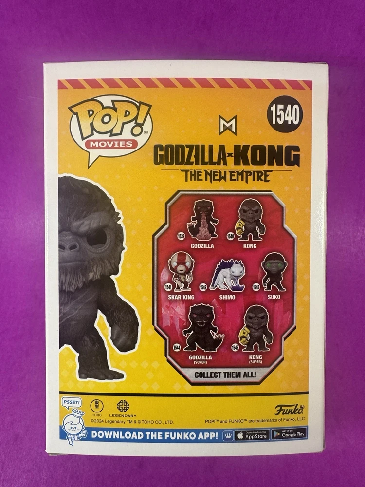 Immerse yourself in the world of action and adventure with the Funko Pop! Kong Godzilla Vs Kong The New Empire #1540. This vibrant multicolor vinyl figure captures the essence of the iconic movie franchise, bringing you a piece of the epic battles between the two colossal titans. Perfect for collectors and fans alike, this standard-sized collectible is a must-have addition to any Godzilla collection. Encased in its original, unopened packaging, the figure ensures pristine quality, safeguarded by a protector for added peace of mind. The detailed design, reflecting the character's appearance in the movie "Godzilla," makes it an impressive display piece. With its unique Pop! Vinyl charm and association with the MLB sport, this Funko figure is a versatile treasure for enthusiasts of all kinds.