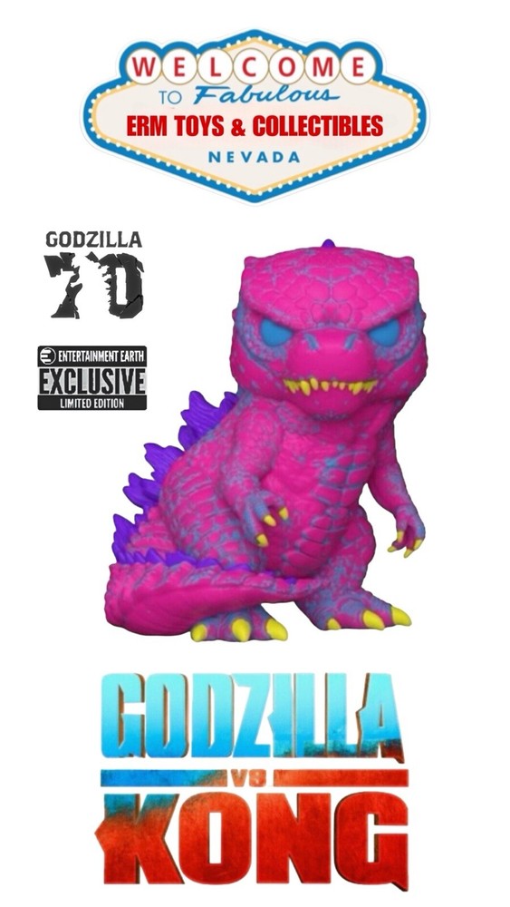 Funko Pop! Movies: Godzilla vs. Kong - Godzilla Black Light Entertainment Earth Exclusive (Vaulted) With EcoTEK Hard Protector Harness the power of Godzilla's mighty pose as the King of the Monsters prepares to battle Kong to settle an ancient rivalry. When you shine a black light on this Godzilla vs. Kong Godzilla Black Light Entertainment Earth Exclusive, it reacts with a radiant glow affect! The enraged beast is more powerful than ever in neon shades of yellow, pink, blue, and purple, complete with a devious expression and sharp teeth. Measuring roughly 3 3/4-inches tall, this limited edition exclusive comes in window-box packaging. You don't want to miss him, so order him right away! Shipped with a EcoTEK Hard Case Pop Protector Please Note The item is boxed and displayed in its original packaging Although there may be some slight discoloration and or minor flaws, the box remains in great condition overall. Legal Disclaimer Every item undergoes thorough inspection and verification before being shipped. While we strive to meticulously select high-quality merchandise, it's possible that you may receive a package with minor flaws. These imperfections may include shelf-wear, creases, or slight variations. Additionally, there may be minor issues with paint or flocking. Please note that we are unable to facilitate exchanges solely due to such imperfections. We appreciate your understanding.