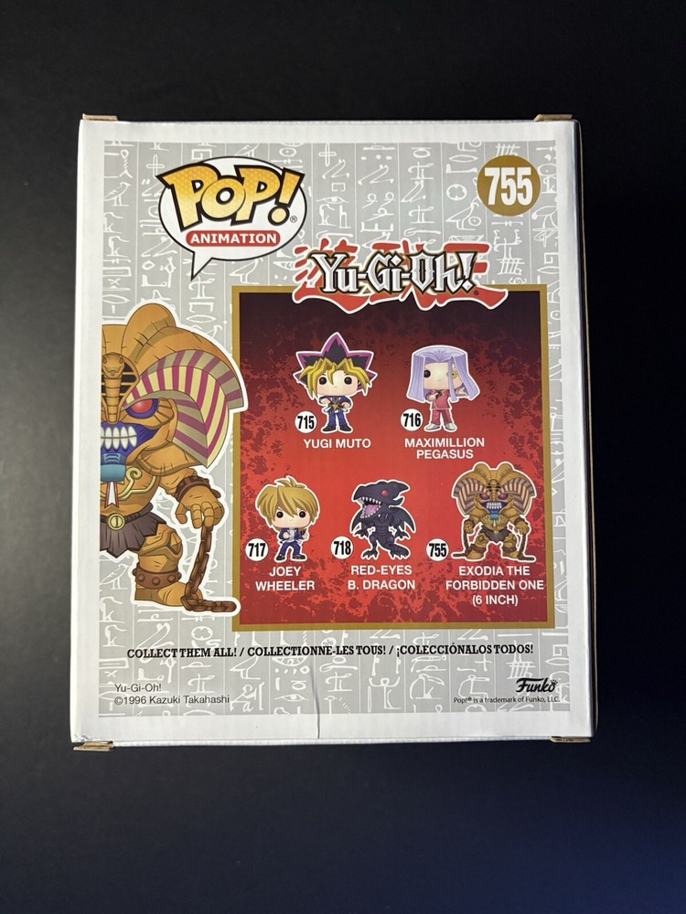 This Funko Pop! vinyl figure stands at 6 inches tall and features the iconic character Exodia from the popular anime and manga franchise Yu-Gi-Oh! The figure is made of high-quality vinyl material and comes in its original, unopened packaging. With its POP Protector, this figure is a great addition to any collection of collectible figures and bobbleheads. The Funko Pop! Exodia the Forbidden One #755 is a must-have for any fan of the Yu-Gi-Oh! TV/streaming show and is part of the Pop! product line. Don't miss out on the chance to own this rare and highly sought-after collectible!