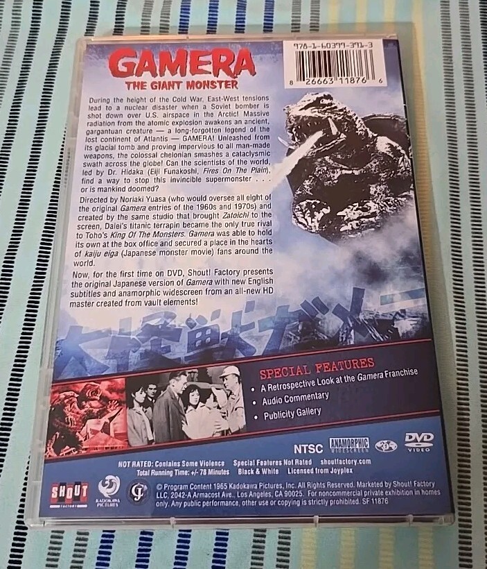 GAMERA The Giant Monster (1965) Black & White OOP DVD with Insert Booklet -Like Godzilla DVD is in Great working condition and comes from a smoke free home. It will be shipped out in a protective box via USPS Media mail shipping with tracking included