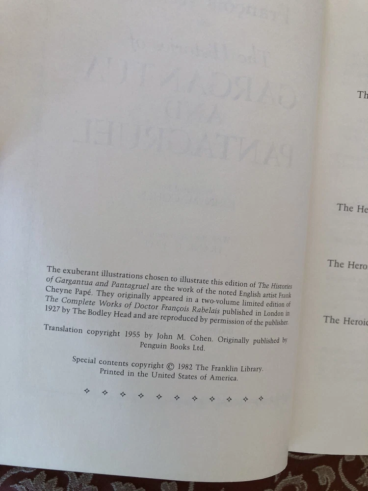 THE HISTORIES OF GARGANTUA AND PANTAGRUEL By Francois Rabelais Franklin Library 1/4 Leather Bound HC 1982. Shipped with USPS Media Mail....