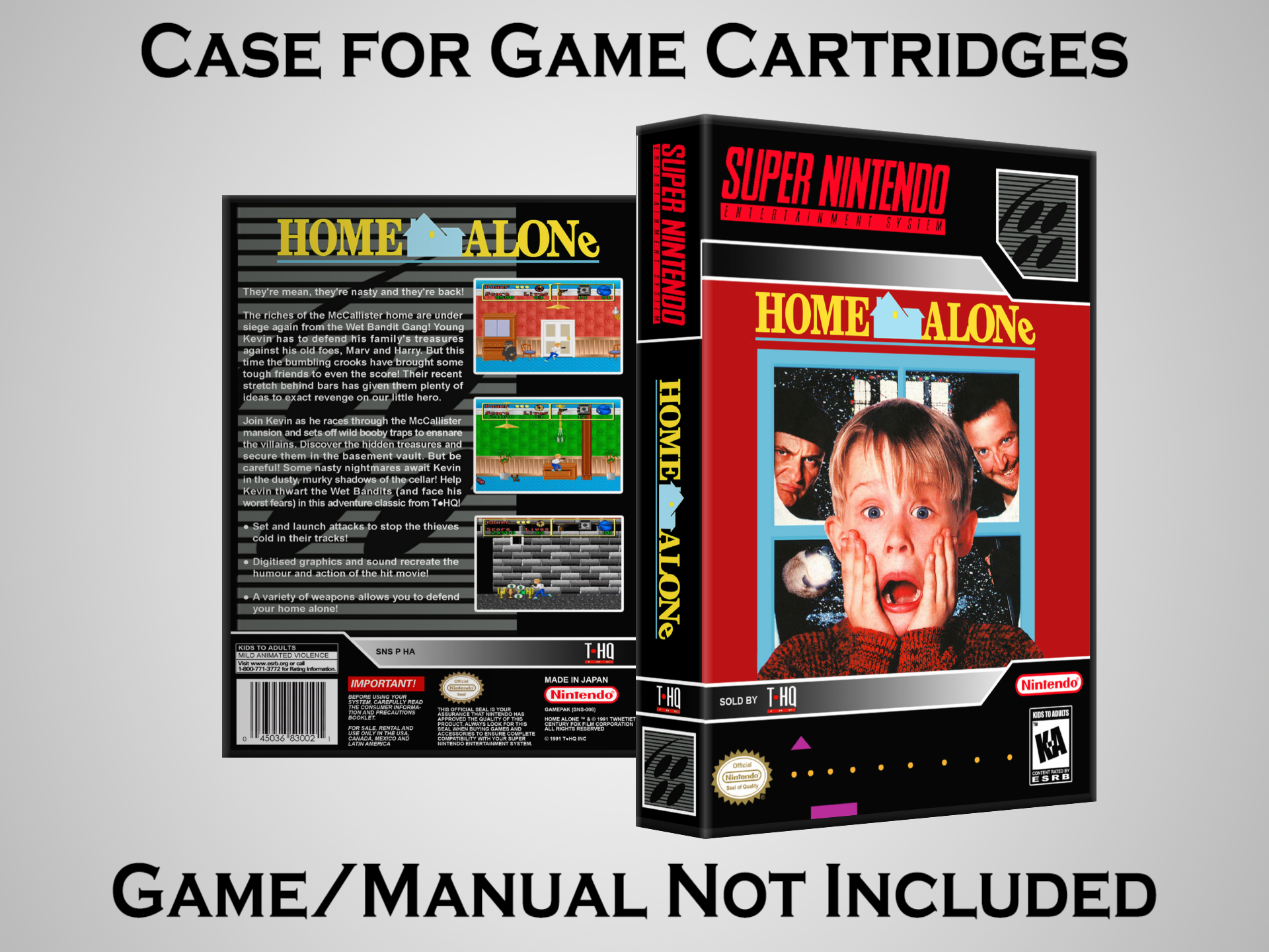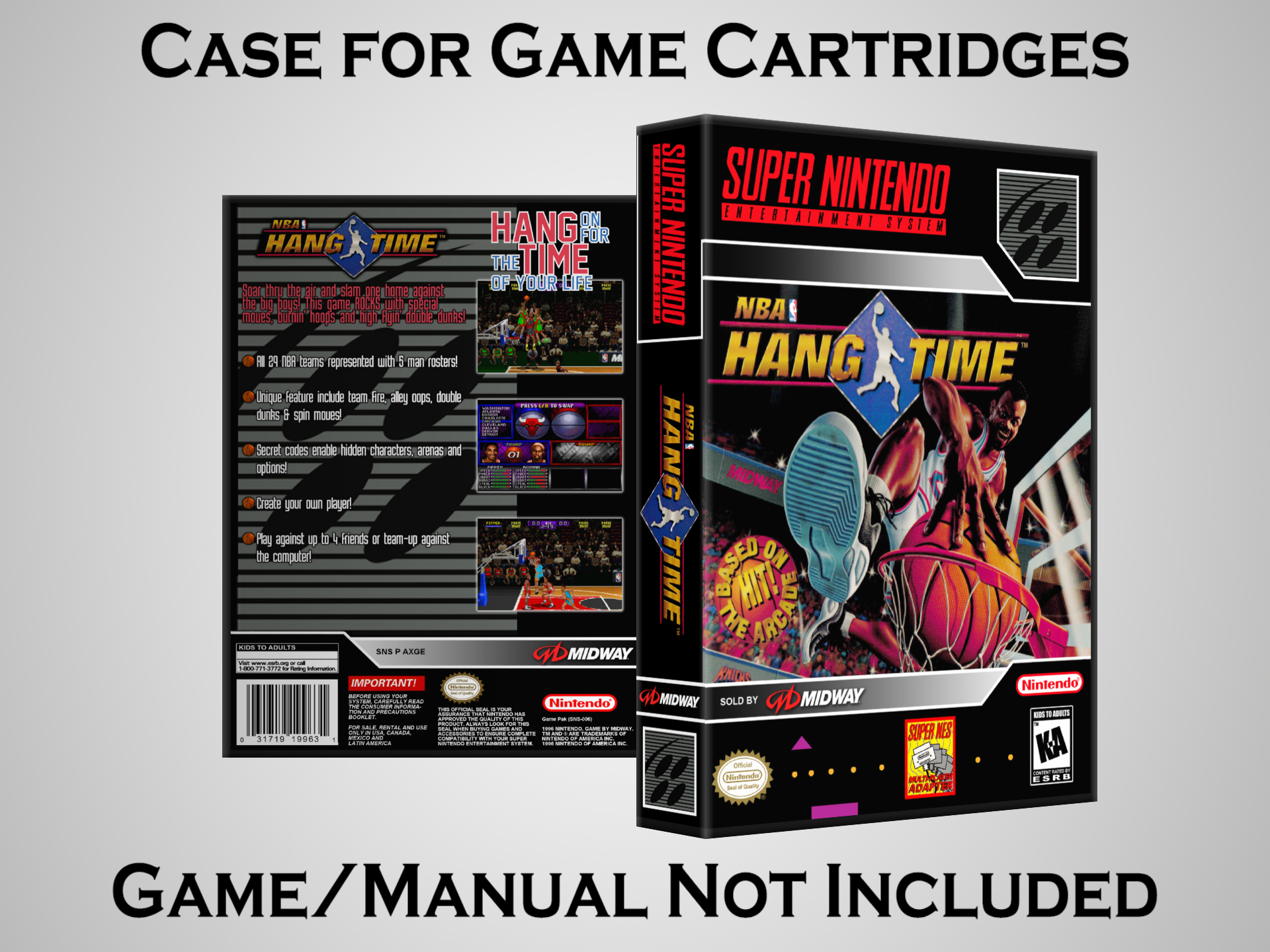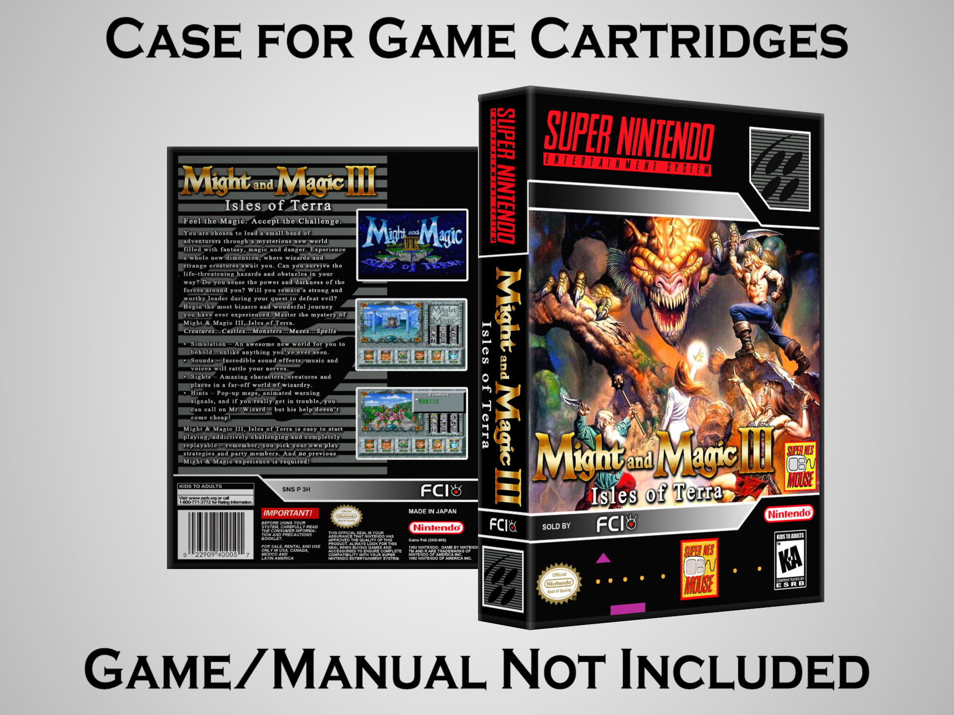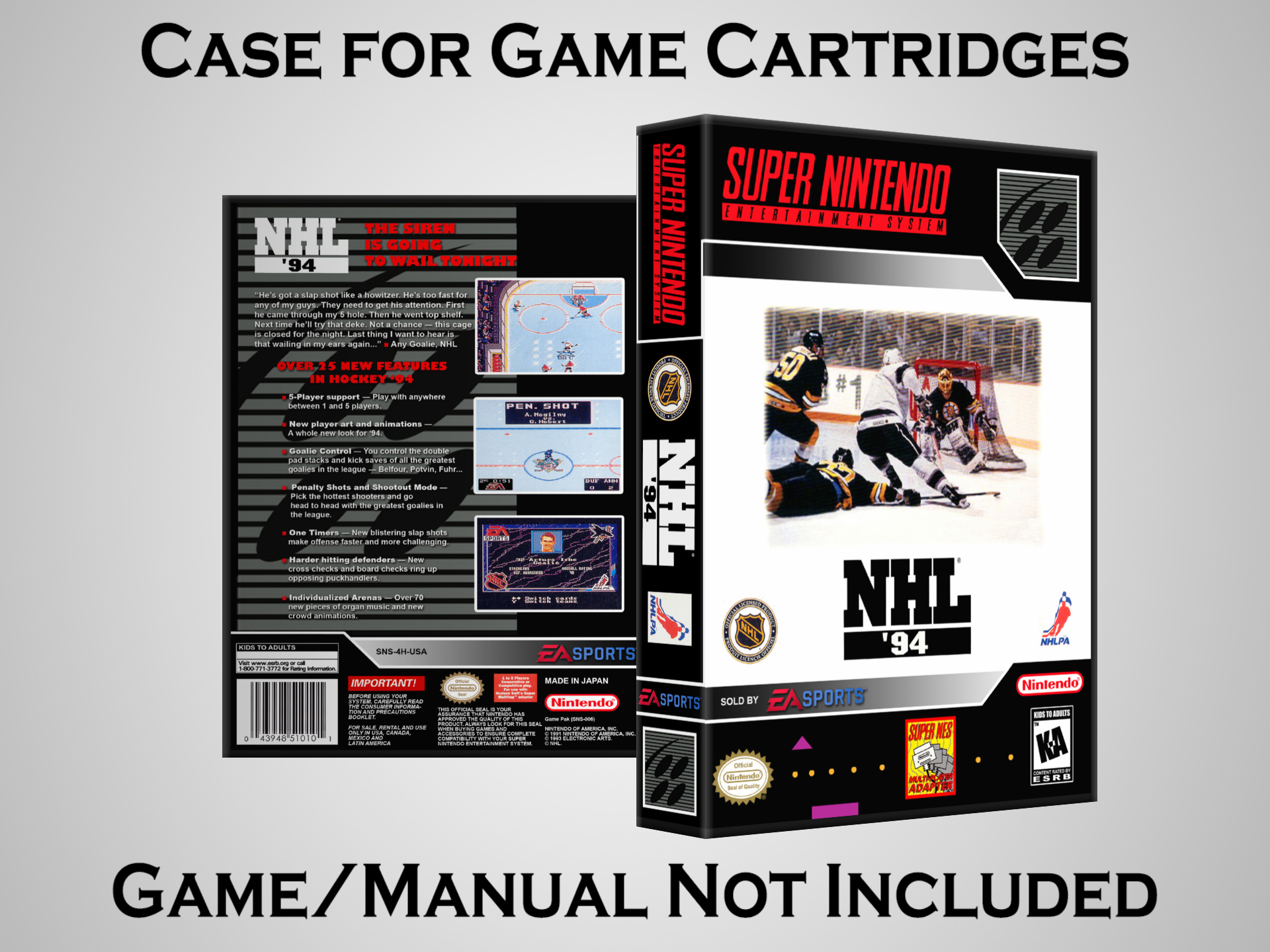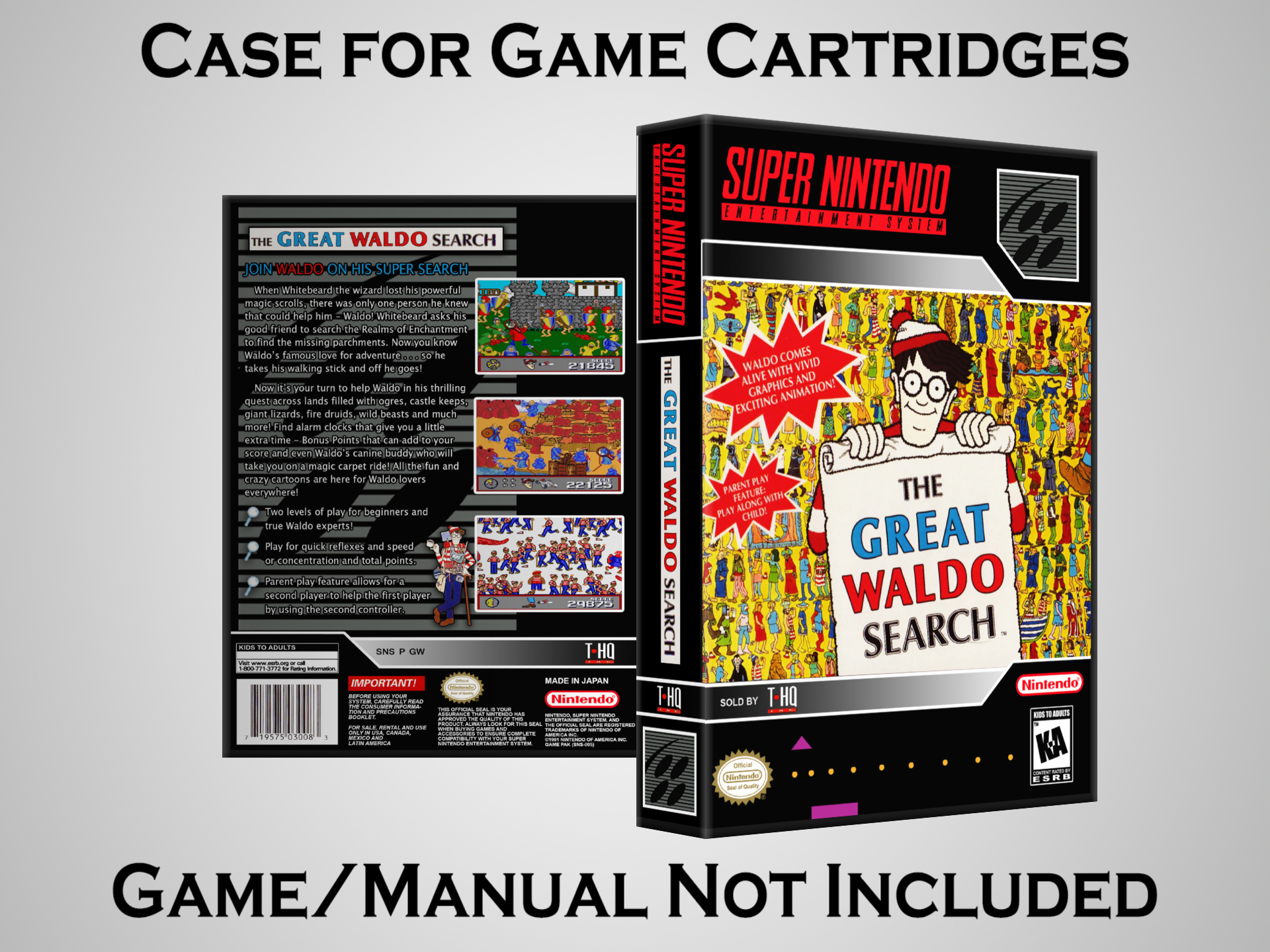 Perfect for collectors! This sturdy dark grey case fits SNES cartridges securely, with extra clips to hold manuals. Much better than flimsy universal cases—snaps shut tight and looks sleek on a shelf. Great for preserving your favorite games without the original box. Highly recommend!