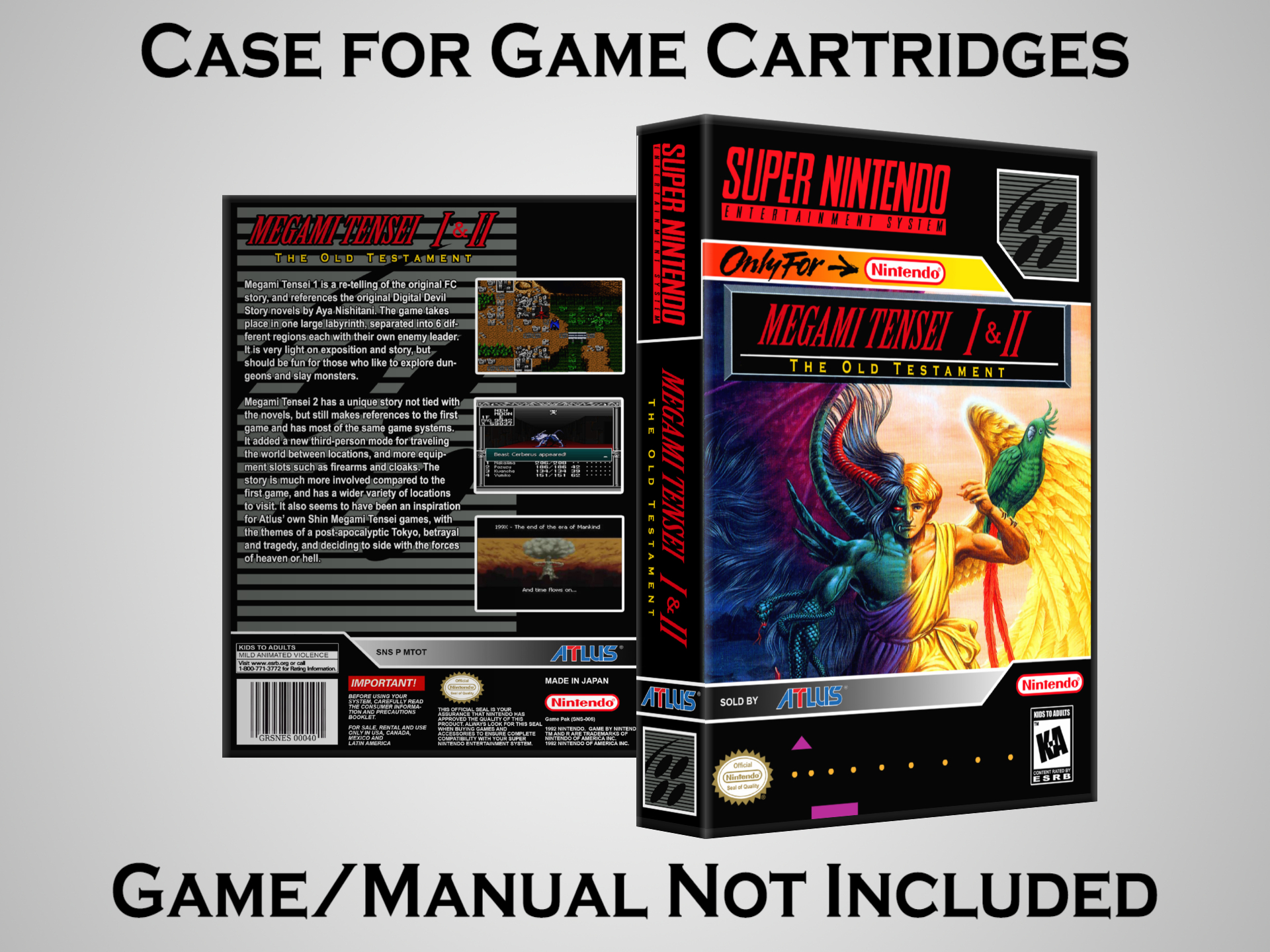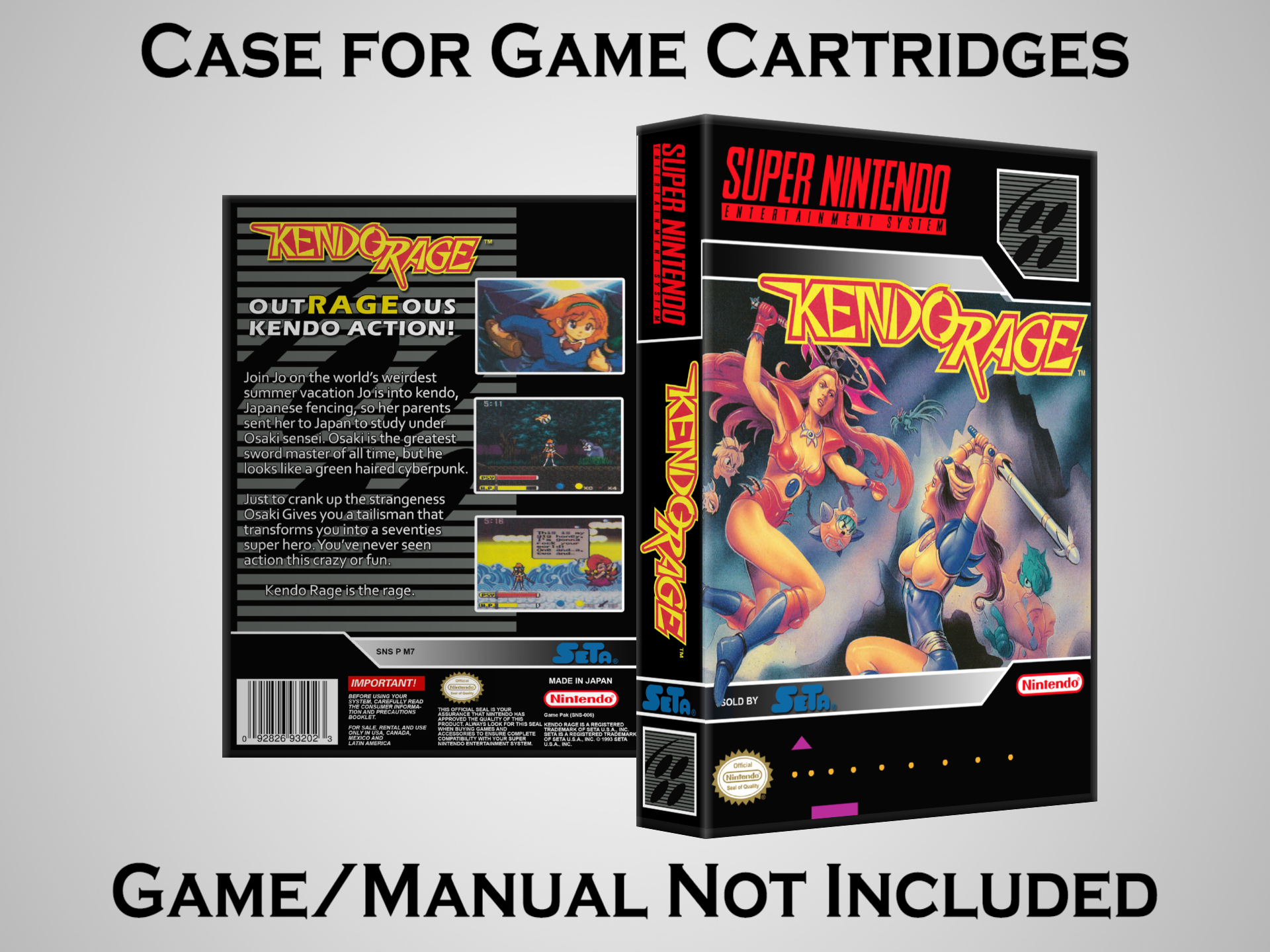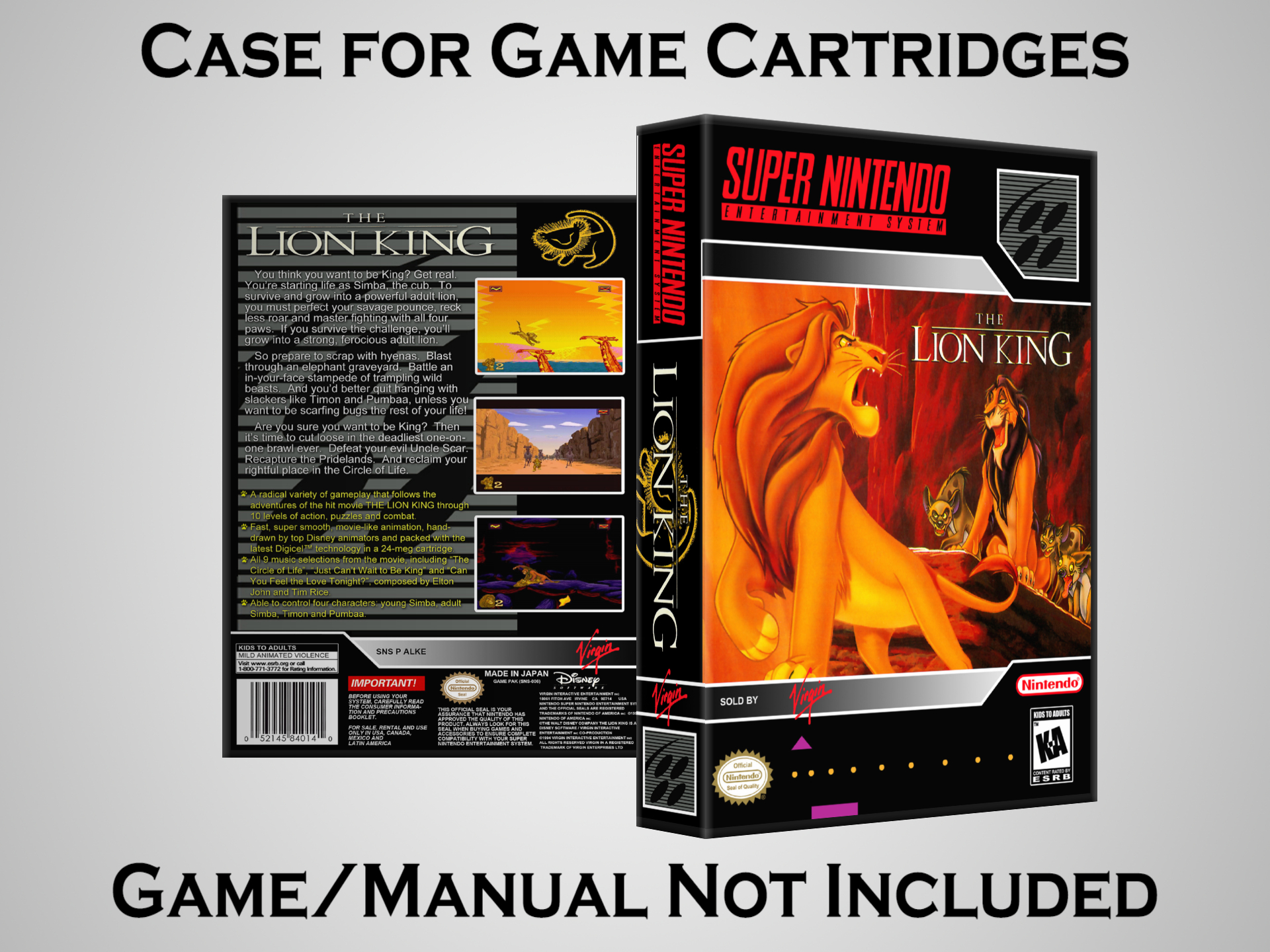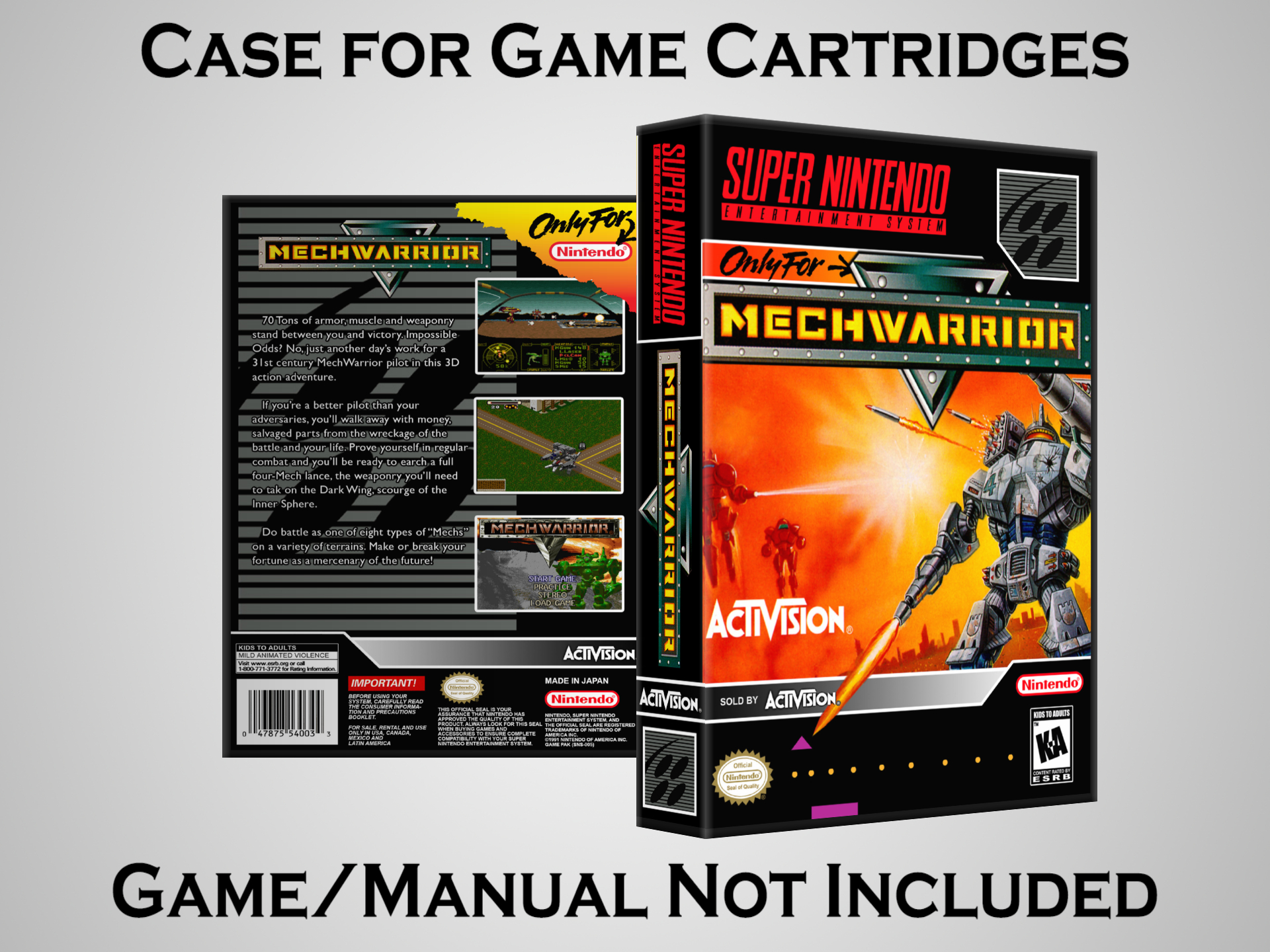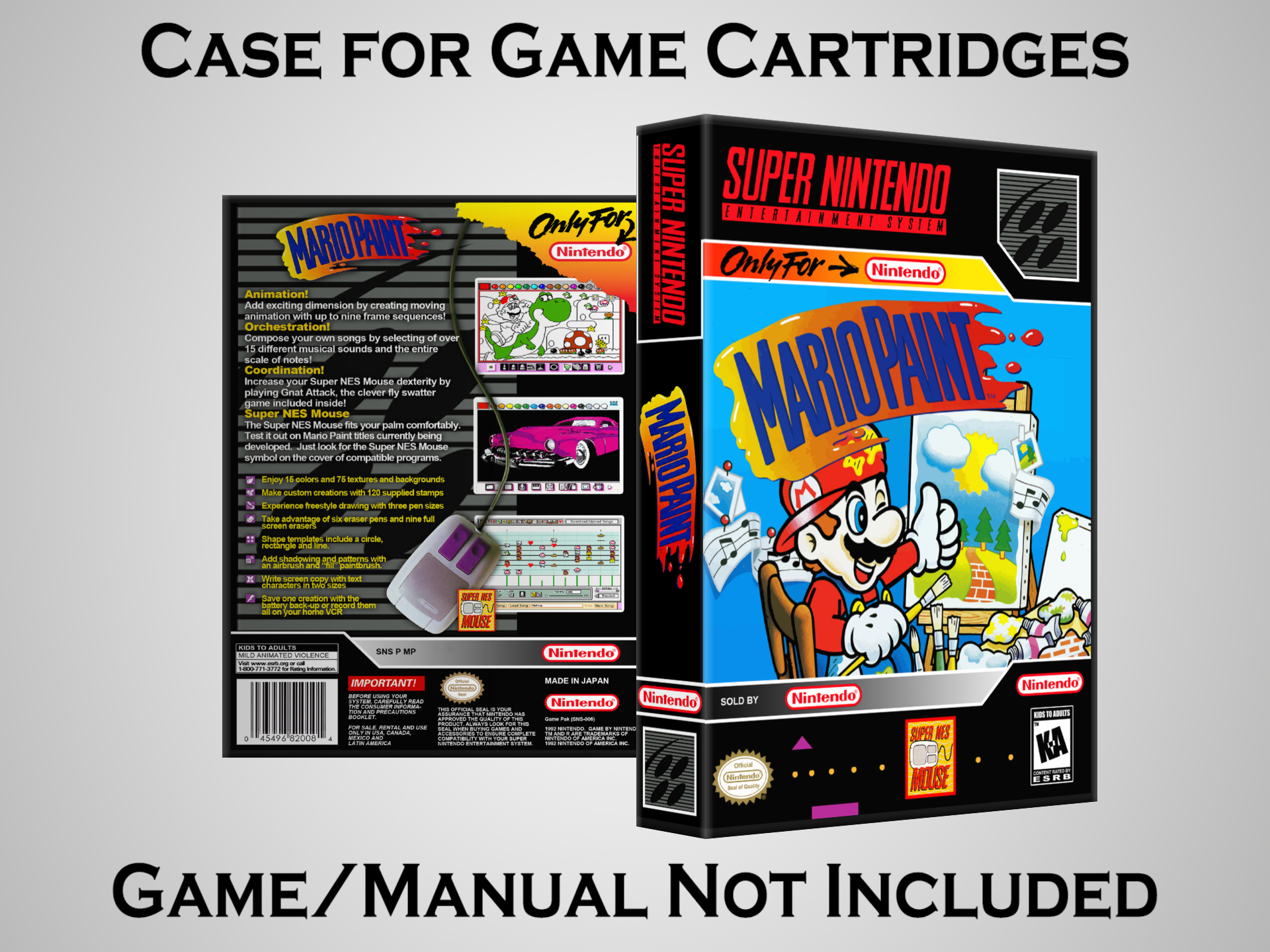 Perfect for collectors! This sturdy dark grey case fits SNES cartridges securely, with extra clips to hold manuals. Much better than flimsy universal cases—snaps shut tight and looks sleek on a shelf. Great for preserving your favorite games without the original box. Highly recommend!