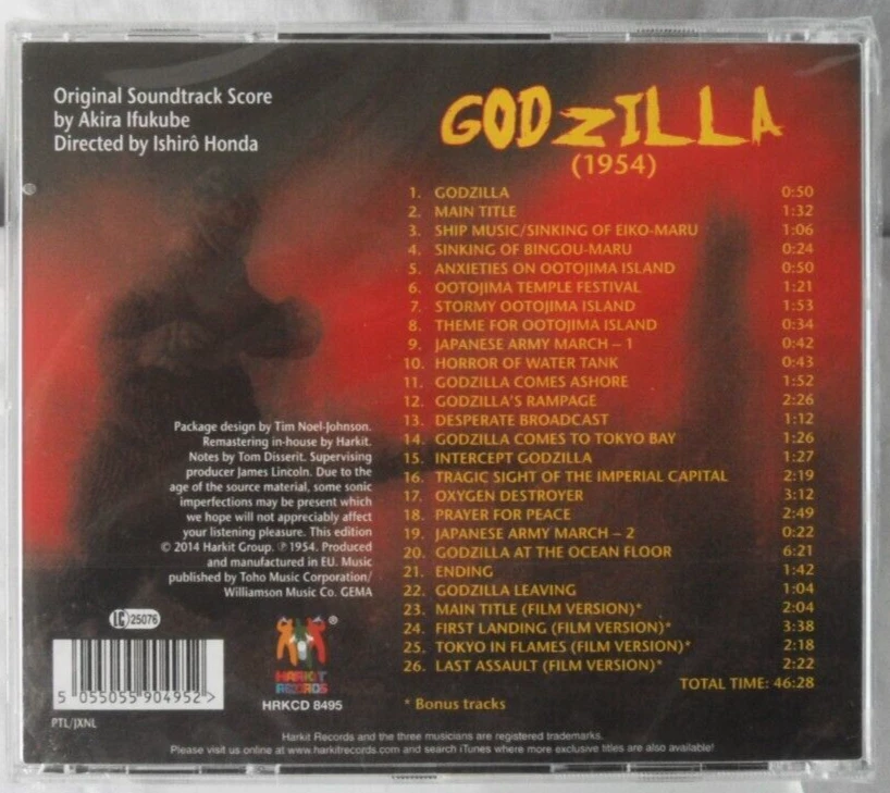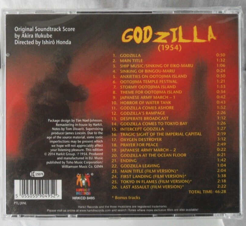GODZILLA (1954) ORIGINAL SOUNDTRACK SCORE BY AKIRA IFUKUBE CD NEW CD **New** Will post second class....