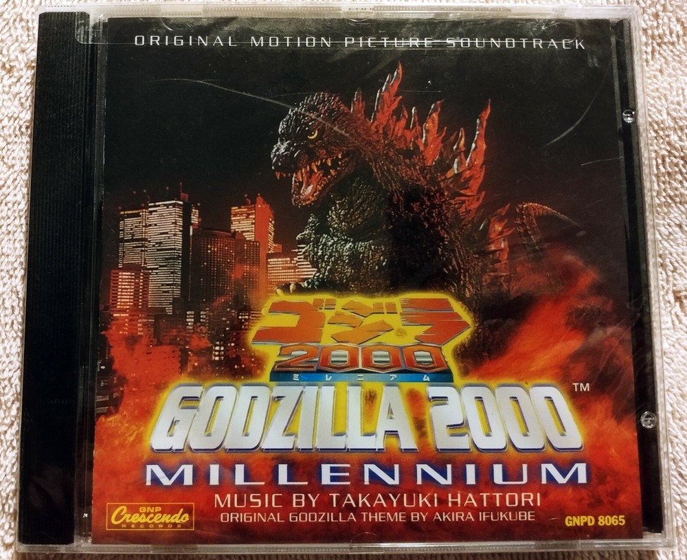 Another Great, Scarce, Out of Print Original Japanese Soundtrack! GODZILLA 2000 MILLENNIUM Music Composed by Takayuki Hattori and Akira Ifukube Original USA Issue! NEW! Factory Sealed Condition. Title: Godzilla 2000: Millennium Japanese Title: Gojira ni-sen mireniamu Also Known As: Gojira 2000 Godzilla 2000 Godzilla Millennium CD Label: GNP Crescendo CD Number: GNPD 8065 Music by: Takayuki Hattori except Track #36 by Akira Ifukube Number of tracks: 36 Running time: 58:38 Number of discs: 1 Year of release/manufacture: 2000 Year Movie Released in Japan: Dec. 1999 Year Movie Released in U.S.: August 2000 Case, CD and all extra paperwork are in excellent condition. This is an ORIGINAL soundtrack CD, NOT a CDR. for a more detailed review of this classic Japanese SF CD soundtrack ~ Courtesy of my friend Larry T's all encompassing Godzilla music on CD web page ~