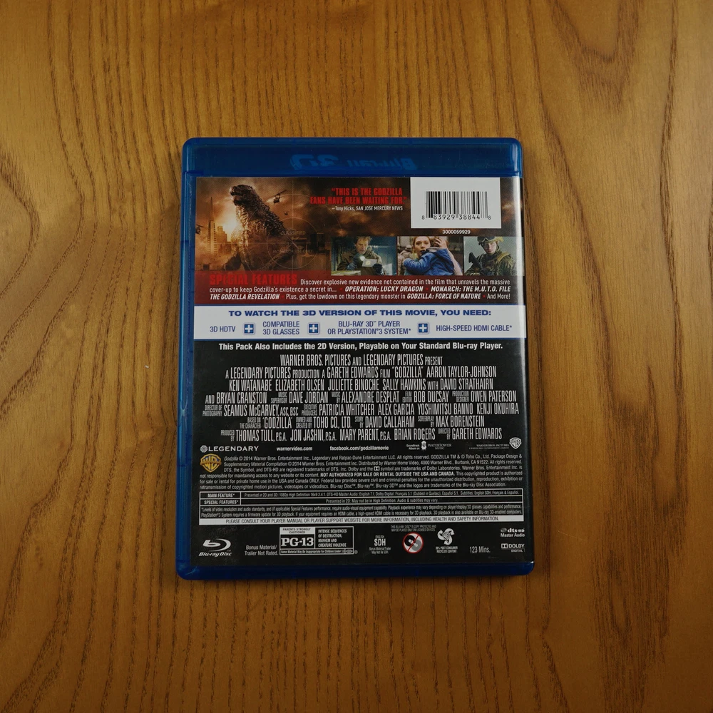 "GODZILLA" FROM 2014, USED AND IN EXCELLENT CONDITION WITH LIGHT WEAR, NO SLIPCOVER, NO DIGITAL. INCLUDED ARE 3D BLU-RAY AND REGULAR BLU-RAY. I AM SELLING MY 3D MOVIES SO HAVE A LOOK AT MY OTHER ITEMS IF YOU ARE INTERESTED. Thanks for your interest! I will answer all questions! I will package with care! I will often ship the same day you pay! 10.15.2023 I nternational Buyers: Import duties, taxes, and charges are not included in the item price or shipping cost. Please check with your country's customs office to determine what these additional costs will be prior to bidding or buying. These charges are the buyer's responsibility.