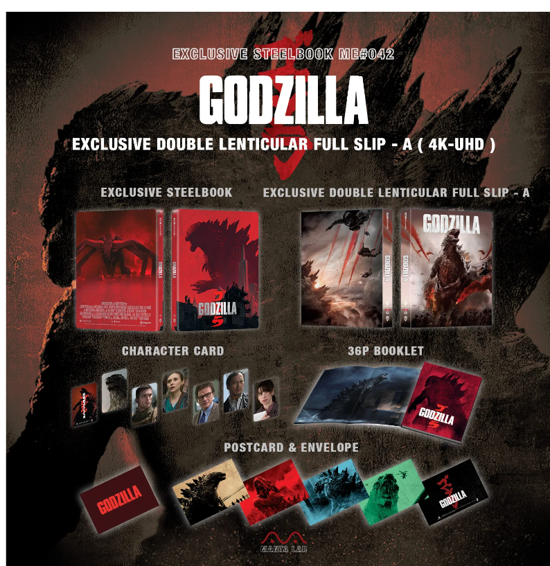 GODZILLA [4K UHD + 2D ] Blu-ray STEELBOOK Manta Lab Exclusive #42 [1-Click Boxset Edition] <#> Brand New - Factory Sealed - Region FREE ML #042 Godzilla 1-Click Boxset Edition Includes: * WEA, Exclusive Steelcase designed by Manta Lab features Full Glossy" Finish and "Debossed Title" * One Click Box: Spot Foil + Spot Matte + Spot Glossy + Spot Embossing * Double Lenticular Full Slip A: 3D Lenticular x2 + Spot Matte + Spot Glossy + Embossing * Double Lenticular Full Slip B: 3D Lenticular x 2 + Spot Matte + Spot Glossy + Embossing Spot Glossy + Spot Foil + Embossing * Full Slip: Spot Matte + Spot Glossy + Spot Foil + Embossing * Exclusive Pocket Holder * Postcards, Character Cards * Exclusive Numbering Sticker * Exclusive Release Front Sticker * Exclusive Release Lenticular Sticker 4K UHD Audio: English Dolby Atmos TrueHD English Descriptive Audio 5.1 French DTS-HD Master Audio 7.1 German DTS-HD Master Audio 7.1 Italian DTS-HD Master Audio 7.1 Czech Dolby Digital 5.1 French Dolby Digital 5.1 Spanish Dolby Digital 5.1 Hungarian Dolby Digital 5.1 Polish (VO) Dolby Digital 5.1 Thai Dolby Digital 5.1 Subtitles: English SDH, Complex Chinese, Spanish, Czech, Danish, Dutch, Finnish, French, German SDH, Hungarian, Italian SDH, Korean, Norwegian, Polish, Romanian, Swedish, Thai 2D Audio: English DTS-HD Master Audio 7.1 English Descriptive Audio Dolby Digital 5.1 Czech Dolby Digital 5.1 Hindi Dolby Digital 5.1 Hungarian Dolby Digital 5.1 Mandarin Dolby Digital Polish Dolby Digital 5.1 Russian Dolby Digital 5.1 Thai Dolby Digital 5.1 Turkish Dolby Digital 5.1 Ukrainian Dolby Digital 5.1 Subtitles: English, Cantonese, Complex Chinese, Simplified Chinese, Arabic, Indonesian, Bulgarian, Croatian, Czech, Estonian, Greek, Hebrew, Hungarian, Korean, Latvian, Lithuanian, Polish, Portuguese, Romanian, Russian, Serbian, Slovenian, Thai, Turkish Steelbook Boxset is Brand New, in Mint Condition No scratches or dents visible through the Plastic Wrap. The pictures are from the actual steelbook boxset you are purchasing. All boxsets ship in a box with plenty of packing materials for protection. Domestic Combined Shipping is Available. Please Contact Me For A Shipping Quote. We Offer International Shipping Through eBay's Global Shipping Program. Click here for eBay's Global Shipping Program Overview . Please click here to check out my other listings for other rare Steelbooks. Feel free to contact me with any questions or concerns you may have. Steelbook Disclaimer. Steelbooks are very fragile and may have flaws underneath the wrapping that can only be seen once the wrapping is taken off. I will not be held responsible if a disc gets loose during transit or for any defects that cant be noticed when the wrapping is still intact. Make sure the item is to your satisfaction before you open it. For this reason, if you have opened the steelbook or 30 days have passed. NO returns or refunds will be accepted.
