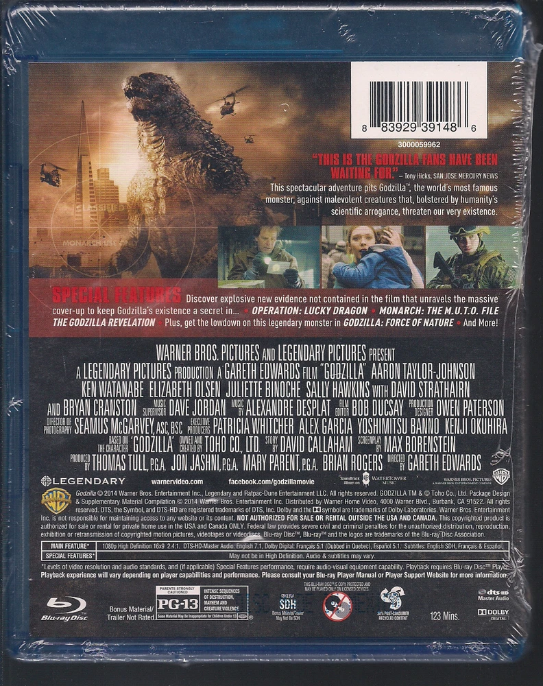 GODZILLA Blu-ray 2014 Elizabeth Olsen Bryan Cranston NEW & Factory Sealed
