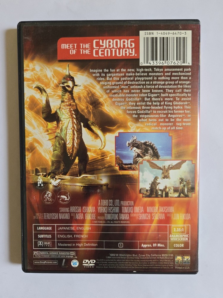 WE'RE BACK!!! ENJOY OUR LATEST CROP OF GOODIES. 50TH ANNIVERSARY "GODZILLA VS GIGAN" DVD DVD REGION 1 (US/CAN) CONDITION: VERY GOOD DISCS IN VERY GOOD CONDITION MAY HAVE LIGHT WEAR THAT DOESN'T AFFECT PLAYBACK. USA SELLER! OFFICIAL MERCHANDISE. BID WITH CONFIDENCE. MESSAGE ME FOR DETAILED PHOTOS NO FUNNY BUSINESS PLEASE PLEASE NOTE: SHIPPING COSTS MAY INCLUDE PACKAGING AND HANDLING. DISCOUNTS MAY RESULT IN MORE ECONOMICAL SHIPPING METHODS. FOR EASY COMBINED SHIPPING DISCOUNTS, FIRST ADD ALL DESIRED ITEMS TO CART. THE REDUCED SHIPPING RATE SHOULD BE APPLIED DURING CHECKOUT. MESSAGE ME IF THERE ARE ANY ISSUES. I DO NOT CHARGE TAX. EBAY MAY AUTOMATICALLY COLLECT SALES TAX BASED ON YOUR STATE/COUNTRY LAWS. I DON'T RECEIVE THAT MONEY. IT GOES DIRECTLY TO EBAY, WHO FUNNELS IT ACCORDINGLY. THANKS FOR UNDERSTANDING!