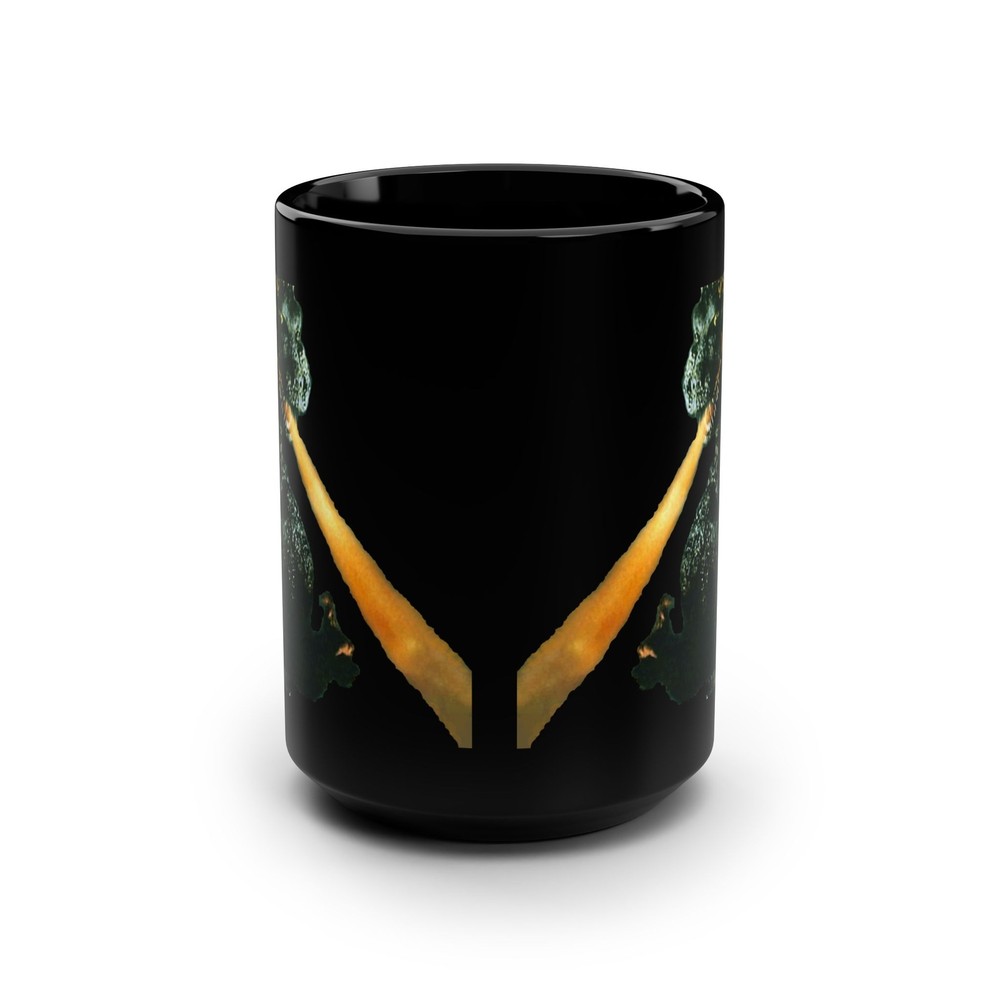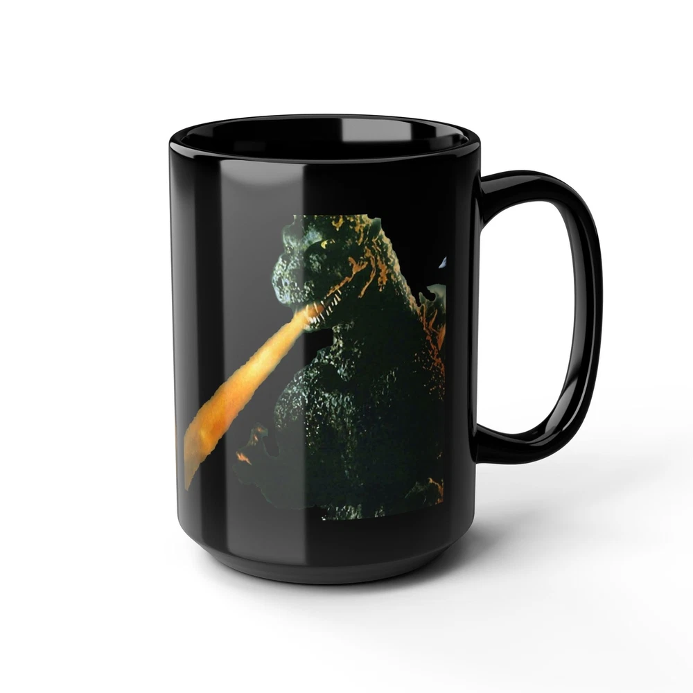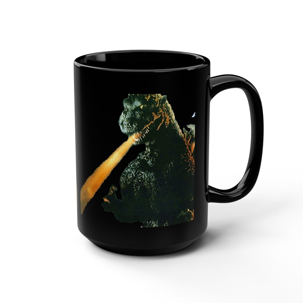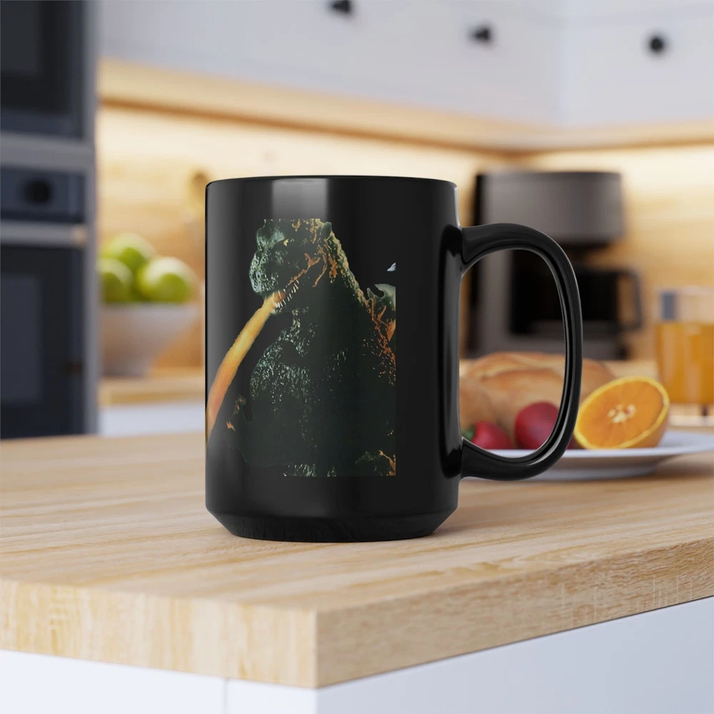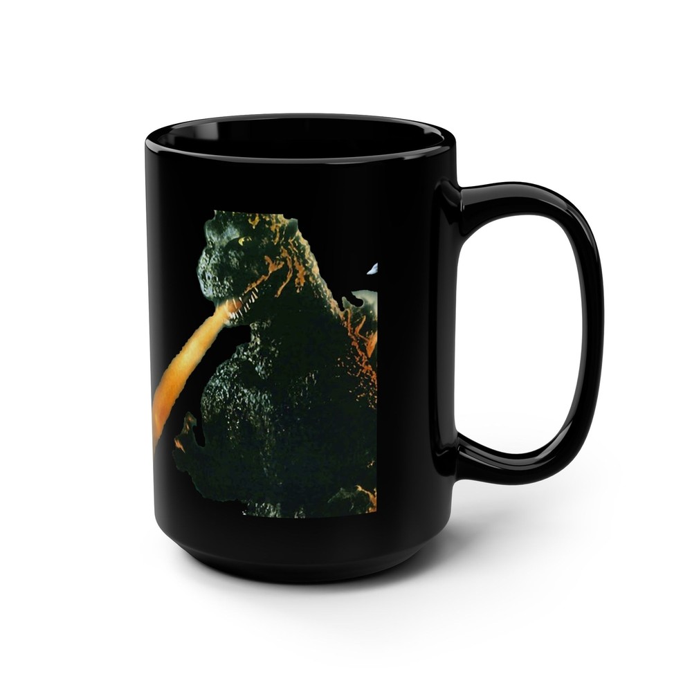 GODZILLA Death Ray Never run out of your favorite hot drink! Bigger size durable ceramic mug in always fashionable black color. High quality sublimation printing makes it an appreciated gift to every true coffee or tea lover, who always asks for a refill. .: Black ceramic .: 15 oz (0.44 l) .: Rounded corners .: C-handle .: NB! Black print on black mug may differ in tones, use transparent background
