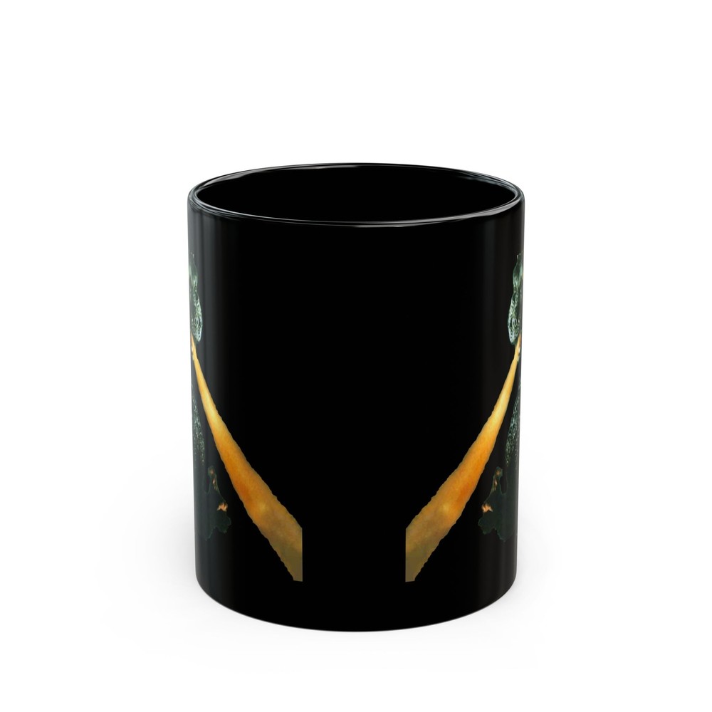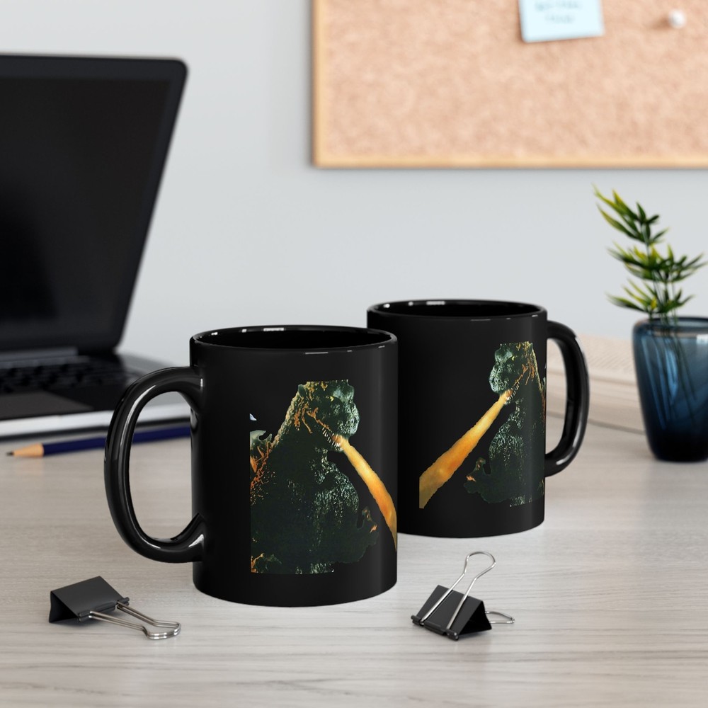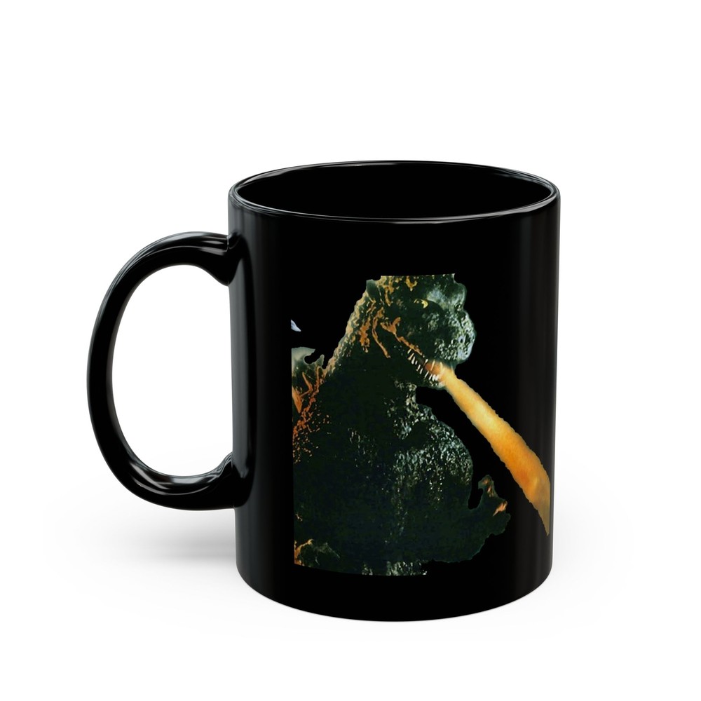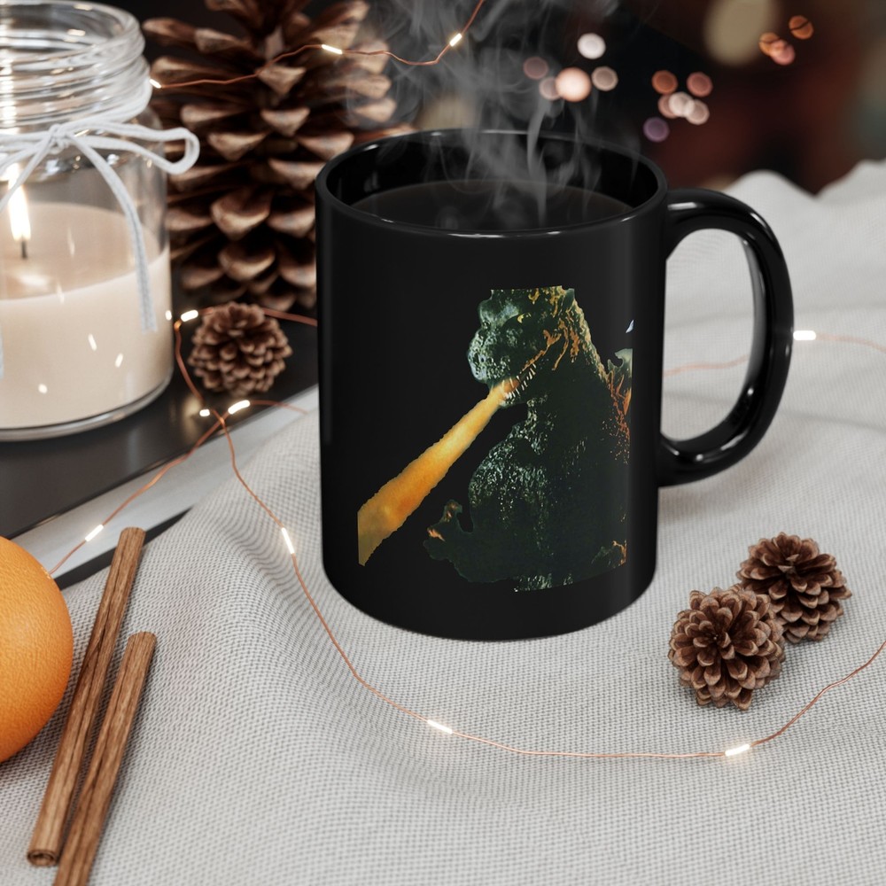 GODZILLA Death Ray Never run out of your favorite hot drink! Durable ceramic mug in always fashionable black color. High quality sublimation printing makes it an appreciated gift to every true coffee or tea lover, who always asks for a refill. .: Black ceramic .: 11 oz (0.33 l) .: Rounded corners .: C-handle .: NB! Black print on black mug may differ in tones, use transparent background