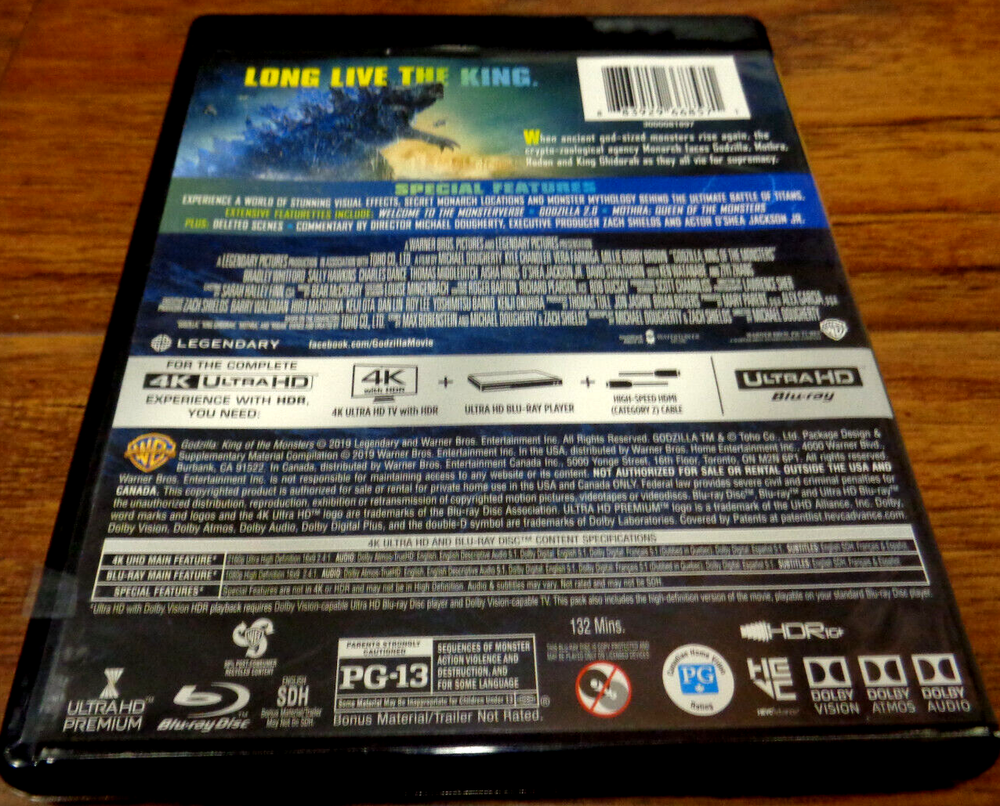 GODZILLA KING OF MONSTERS 4K UHD BLU RAY 2019 WARNER BLU RAY AND 4K BLU RAY DISC W/DIGITAL VERY GOOD USED CONDITION SEE IMAGES FOR DETAIL