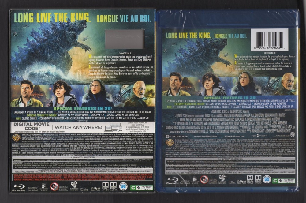 PLEASE READ CAREFULLY BEFORE YOU BID. ALSO NOTE THAT MOST ITEMS SHIP SAME DAY AS PAYMENT OR THE DAY AFTER PAYMENT IS RECEIVED. NEW! GODZILLA KING OF THE MONSTERS (2019) BLU-RAY 3D + BLU-RAY CANADIAN EDITION WITH SLIPCOVER - RATED PG-13 - FACTORY SEALED ORIGINAL. - NOT A REPACKAGED FORMER RENTAL, BOOTLEG, OR COPY. - FROM A NON-SMOKER'S COLLECTION. - AS FAR AS I CAN TELL THE DISC IS NOT LOOSE SLIDING AROUND IN THE SEALED CASE. - RATED PG-13 *PLEASE NOTE THAT THE SLIPCOVER HAS SOME MINOR SIGNS OF WEAR. PLEASE SEE THE SCANS AND PHOTOS, BUT KEEP IN MIND THE SOME OF WHAT IS IN THE PHOTOS IS JUST LIGHT GLARE. *ANY INCLUDED DIGITAL COPIES WILL LIKELY NOT WORK. PHOTO IS OF ACTUAL ITEM! PAYMENT & SHIPPING ALL PAYMENTS DUE WITHIN 4 DAYS OF AUCTION CLOSE! Item will ship in a *****BOX***** wrapped in bubble wrap. Shipping is FREE for U.S.P.S. MEDIA MAIL with TRACKING. I do combine shipping for multiple MEDIA items won. U.S.P.S. MEDIA MAIL will be used for more than one disc. Media Mail can take up to 14 days to deliver. *****PLEASE NOTE SHIPPING DELAYS ARE OUT OF MY CONTROL. YOUR ITEM WILL BE SHIPPED IN A TIMELY MANNER, BUT AFTER IT IS SHIPPED IT MAY TAKE SOME TIME.***** RETURNS MUST BE FACTORY SEALED IN THEIR ORIGINAL SHRINK-WRAP. Please let me know if there are any problems. I am very easy to work with and I will always try to find a mutually beneficial solution to any problem.