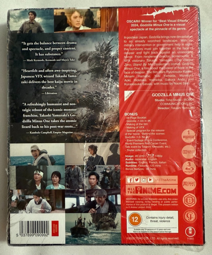 GODZILLA MINUS ONE - UK Limited Ed. Deluxe (4K UHD+ Blu-Ray) New/Scratched Case Note: Blu-ray is region B. 4K is region free. See our photos for details.