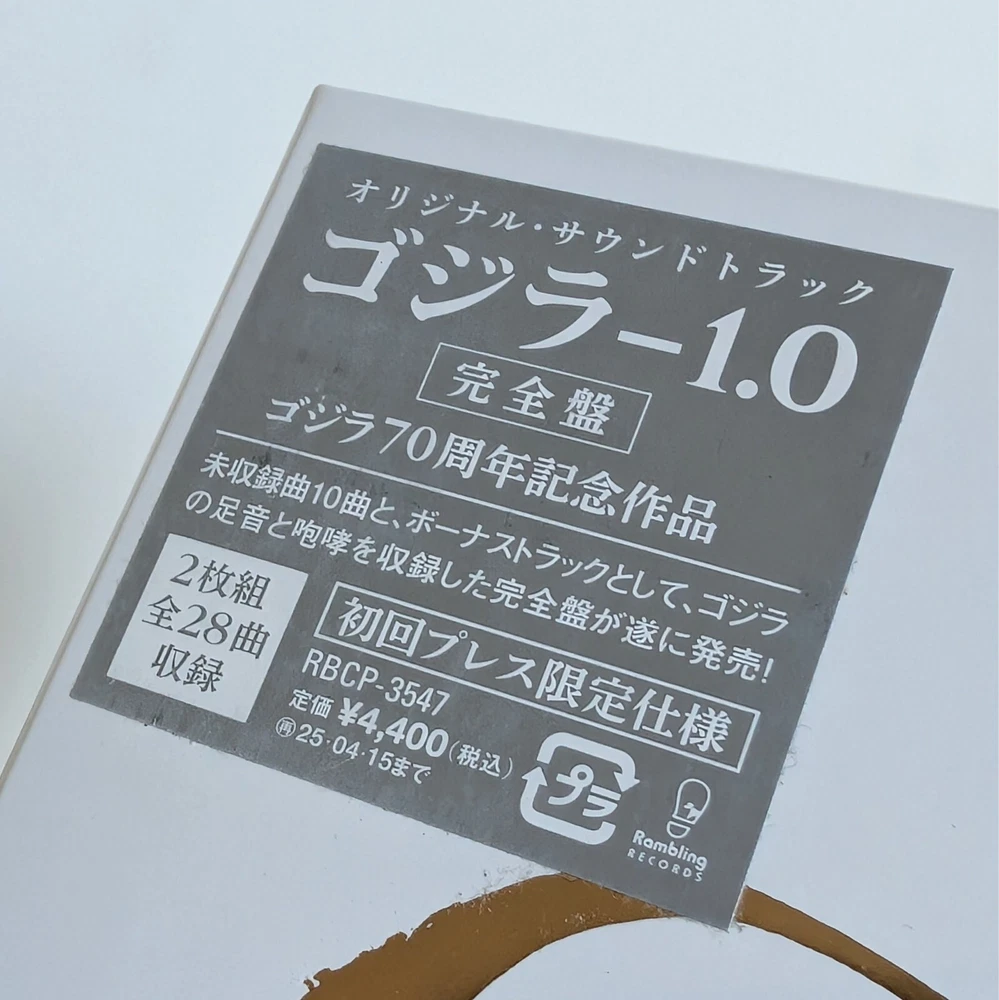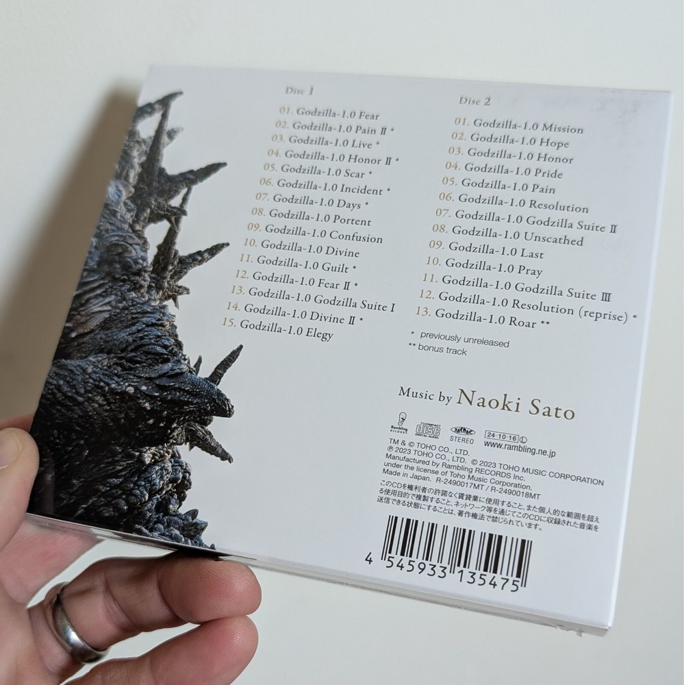 Composed by: Naoki Sato Tracks: CD1: 15; CD2: 13 Release: RBCP-3547 Year: 2023 Condition: New! #ZeroDefects! (unopened) * Official & Factory Sealed * " Since its release in November 2023, this soundtrack has been a huge hit. Unlike previous Godzilla music, the ambient content and the arrangements that pay tribute to Akira Ifukube’s Godzilla music are overwhelming! This complete edition includes 10 previously unreleased songs that fans have been waiting for, as well as Godzilla’s footsteps and roar as a bonus track. " 2xCD Japanese import! Track Listing_ Disc 1 01. Godzilla-1.0 Fear 02. Godzilla-1.0 Pain Ⅱ* 03. Godzilla-1.0 Live* 04. Godzilla-1.0 Honor Ⅱ* 05. Godzilla-1.0 Scar* 06. Godzilla-1.0 Incident* 07. Godzilla-1.0 Days* 08. Godzilla-1.0 Portent 09. Godzilla-1.0 Confusion 10. Godzilla-1.0 Divine 11. Godzilla-1.0 Guilt* 12. Godzilla-1.0 Fear Ⅱ* 13. Godzilla-1.0 Godzilla Suite I 14. Godzilla-1.0 Divine Ⅱ* 15. Godzilla-1.0 Elegy Disc 2 01. Godzilla-1.0 Mission 02. Godzilla-1.0 Hope 03. Godzilla-1.0 Honor 04. Godzilla-1.0 Pride 05. Godzilla-1.0 Pain 06. Godzilla-1.0 Resolution 07. Godzilla-1.0 Godzilla Suite Ⅱ 08. Godzilla-1.0 Unscathed 09. Godzilla-1.0 Last 10. Godzilla-1.0 Pray 11. Godzilla-1.0 Godzilla Suite Ⅲ 12. Godzilla-1.0 Resolution (reprise)* 13. Godzilla-1.0 Roar (Godzilla's footsteps and roar)** *Unreleased tracks **Bonus tracks [End] Shipping_ " Small Parcel " rate (due to SIZE {too thick for "Letter"} & weight). For mutual peace of mind and to comply with eBay Buyer & Seller Protection policies, ALL packages (Domestic & International) are ONLY shipped using INSURED, TRACKED shipping methods. Returns_ Sorry, but no returns on "media" items sold in "Sealed" condition (this includes CDs, vinyl records, video games and books - if listed, pictured and sold as "Sealed"). Packing_ The Soundtracks Shop use robust packing materials and all orders are properly weighed and clearly labelled. I'm an international and domestic shipping specialist. ALL items ship from the UK. Unlike some of my closest competitors, I am not a "Drop Shipper" ! (BEWARE: Some key competitors on here most likely are..). Buy with absolute confidence_ As you will see from my extensive Feedback (here on eBay and other marketplaces) I take great pride is offering and delivering THE very best service you can hope to receive (and deserve). Finally, a big thanks for the interest in my listings. ~John_