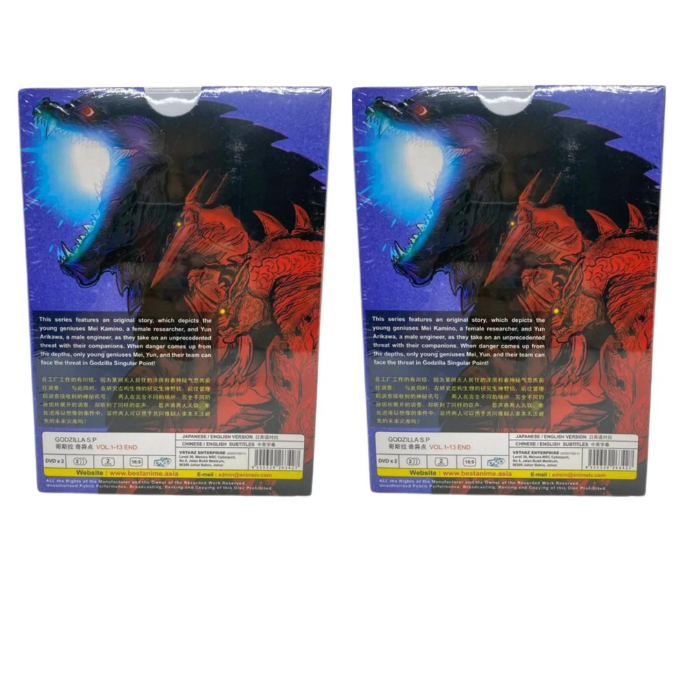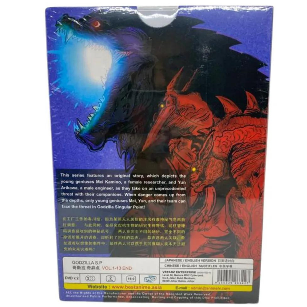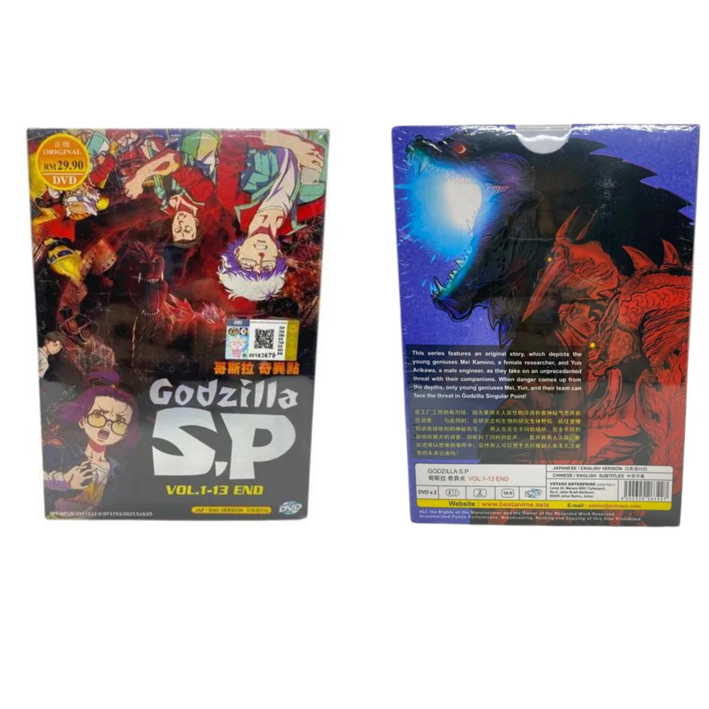 Free eBay listing template designed by dewiso.com GOD ZILLA S.P DVD Anime Singular Point Complete TV Series Movies (Vol.1-13 End) GOD ZILLA S.P DVD Anime Singular Point Complete TV Series Movies (Vol.1-13 End) Weight: 156g Sku number: *SKCT-10313381* Produk Description: Language: Japanese/ English Subtitle: English/Chinese Media Type: NTSC; Widescreen 16:9, All Region No of CDs: 2 DVD Item is 100% Authentic/Genuine Malaysia Edition and come with original sealed. Synopsis This series features an original story, which depicts the young geniuses Mei Kamino, a female researcher, and Yun Arikawa, a male engineer, as they take on an unprecedented threat with their companions. When danger comes up from the depths, only young geniuses Mei, Yun, and their team can face the threat in Godzilla Singular Point! Rate us Feedback is a vital part of the ebay community. We expected you to leave positive feedback for us after receiving your order. If you are not satisfied with your purchased, kindly please contact us first before leaving any negative feedback or opening a dispute. We can be contacted through ebay message and we will response within 24hrs. Payment Currently we only accept a payment through ebay managed payment. Shipping We are using standard shipping (USPS First Class) from warehouse in USA. Handling time is 2-3 working days. Your goods will be shipped with valid tracking number. Estimate delivery is between 2-5 business days. We only ship to the address as stated in buyer account. If you need to use difference address ,please stated clearly during your purchase. Buyer are responsible for any custom fees, duty import or taxes in buyer country. Return Policy Items are Free return within 30 days in a perfect original condition. ClickCrafter 2024