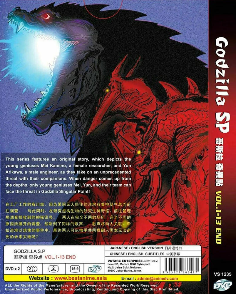 Created with Eselt - Templates and Image Hosting for eBay Sellers My Global Online Shopping GODZILLA SP DVD Vol 1-13 END Give us a call Send us a message Created with Eselt - Templates and Image Hosting for eBay Sellers Our Store Seller Profile Feedback About us Contact GODZILLA SP DVD Vol 1-13 End Godzilla Singular Point (S.P) Vol 1-13 End Japanese Anime DVD Disc Quantity : 2 Disc (1-13 Episodes) Version : Japanese/English Subtitle : English/Chinese Running Time : Approx. 325 Minutes Genres : Action, Sci-Fi, Mystery, Mecha This series features an original story, which depicts the young geniuses Mei Kamino, a female researcher, and Yun Arikawa, a male engineer, as they take on an unprecedented threat with their companions. When danger comes up from the depths, only young geniuses Mei, Yun, and their team can face the threat in Godzilla Singular Point! ~Supplierman~ Payment Currently, we accept payments through eBay-managed payment Shipping The product will be shipped via Singpost, USPS. The handling time is 2 - 5 working days. Your good will be shipped with a valid tracking number. All product are packed and layered with bubble wrap to reduce damaged during shipment delivery. Returns If you have any problem with the order, please contact us via eBay message. We are glad to assist you and resolve the issue as soon as possible. Items can be returned within 30 days in good condition. Other Note : Import duties, taxes and additional charges are not included in the item price or shipping charges. Please be aware that custom import duties and taxes are the buyers responsibility. Links Our Store Seller Profile Feedback About us Contact More items Are you looking for something similar? See our other items! Show more items Contact Give us a call Send us a message Created with Eselt - Templates and Image Hosting for eBay Sellers