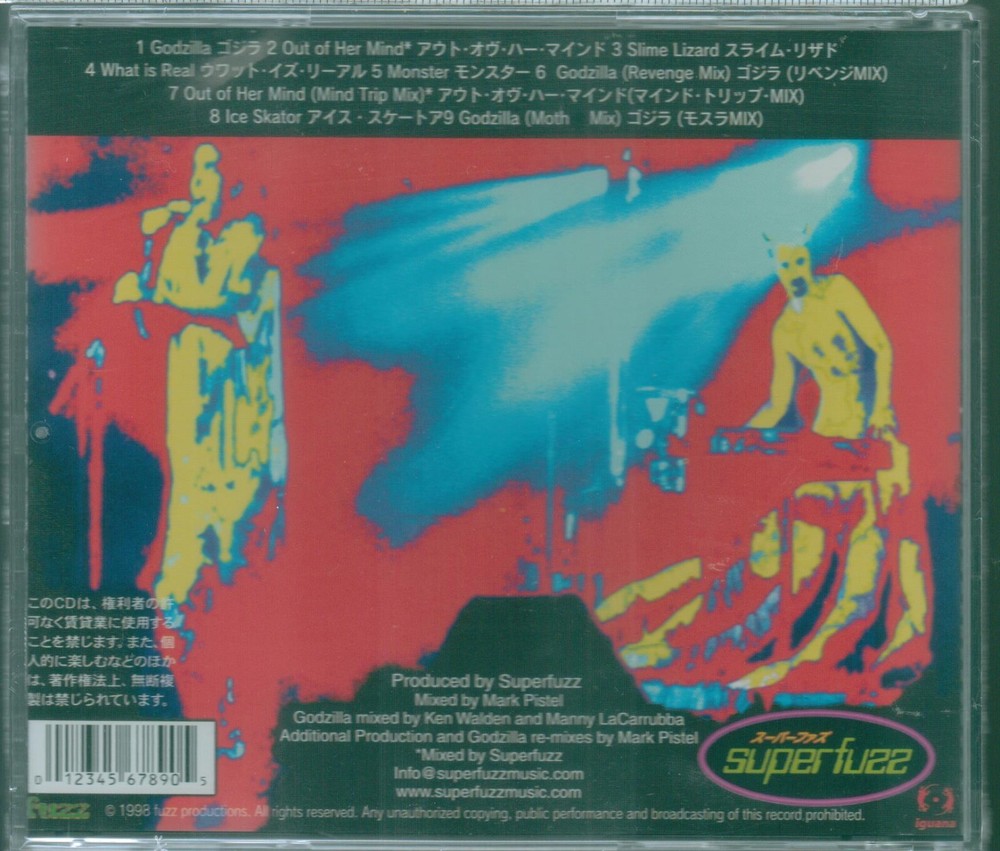The "GODZILLA Super Fuzz" music CD, released in 1998, features rock music by the artist Superfuzz. Produced by Mark Pistel, the album includes a film score/soundtrack style with a multicolor design in a standard jewel case. This sealed CD, graded as Excellent (EX), is a valuable addition to any music collection, offering a unique and energetic sound from the 1990s era.
