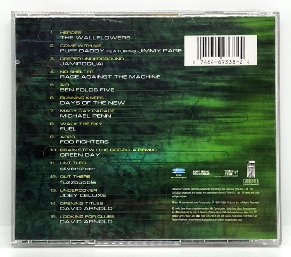 GODZILLA THE ALBUM / SONY MUSIC SOUNDTRACKS (CD 1998) !!! WE CAN COMBINE SHIPPING TO SAVE YOU MONEY ON MULTIPLE PURCHASES. (SEE BELOW). JUST SCROLL DOWN TO THE "ABOUT THIS SELLER" SECTION & CLICK ON "VISIT SELLER'S STORE " OR "SELLER'S OTHER ITEMS" , BUY THE COLLECTIBLES YOU WANT & WAIT UNTIL WE SEND YOU A COMBINED INVOICE BEFORE PAYING. WE ARE HIS-N-HER COLLECTIBLES & HAVE BEEN IN THE COLLECTIBLES BUSINESS FOR OVER 30 YEARS. WE TAKE PRIDE IN DELIVERING QUALITY COLLECTIBLES VERY QUICKLY!!! THANKS!!!