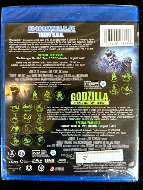 Godzilla Tokyo S.O.S.-2003 & Godzilla Final Wars-2004 (Toho 2-Blu-Ray Double Features W/ Special Features on Both Discs. Factory Sealed. Fast Service....